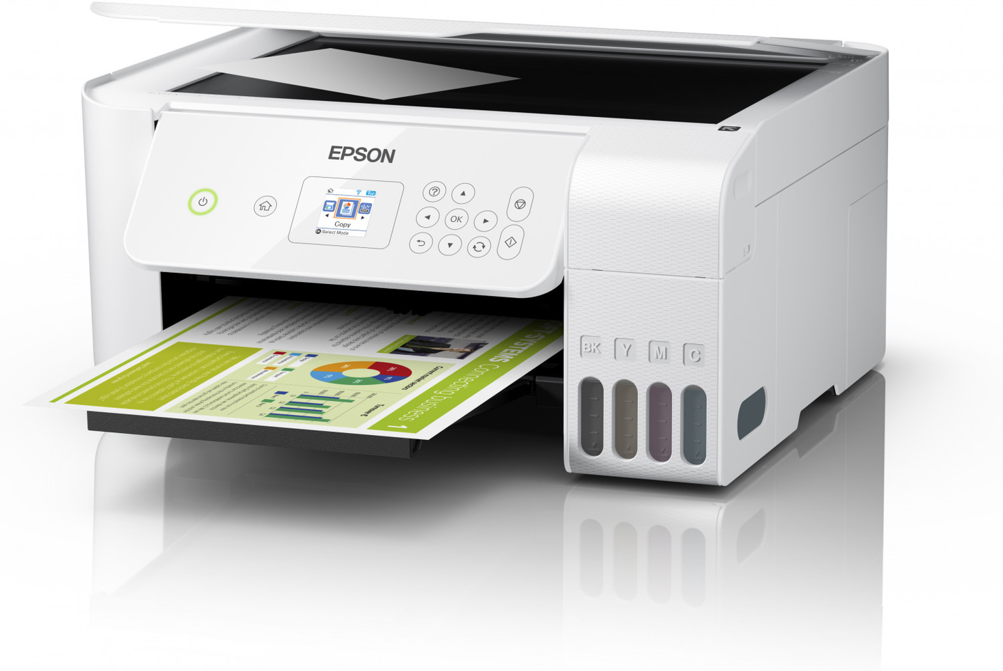 Tämän mustepatruunattoman EcoTank-tulostimen avulla voit pienentää mustekustannuksia keskimäärin 90 prosentilla. Sen mukana toimitetaan erittäin riittoisia mustepulloja, joilla voidaan tulostaa tuhansia sivuja. Etupuolen suuren mustesäiliön täyttäminen käy helposti suljettavilla ja sotkeentumattomilla mustepulloilla. ET-2720-laitteella voit selata tulostimen ominaisuuksia ilman tietokonetta, sillä 3,7 cm:n LCD-näyttö on ihanteellinen asiakirjojen skannaamiseen ja kopiointiin tien päällä oltaessa.