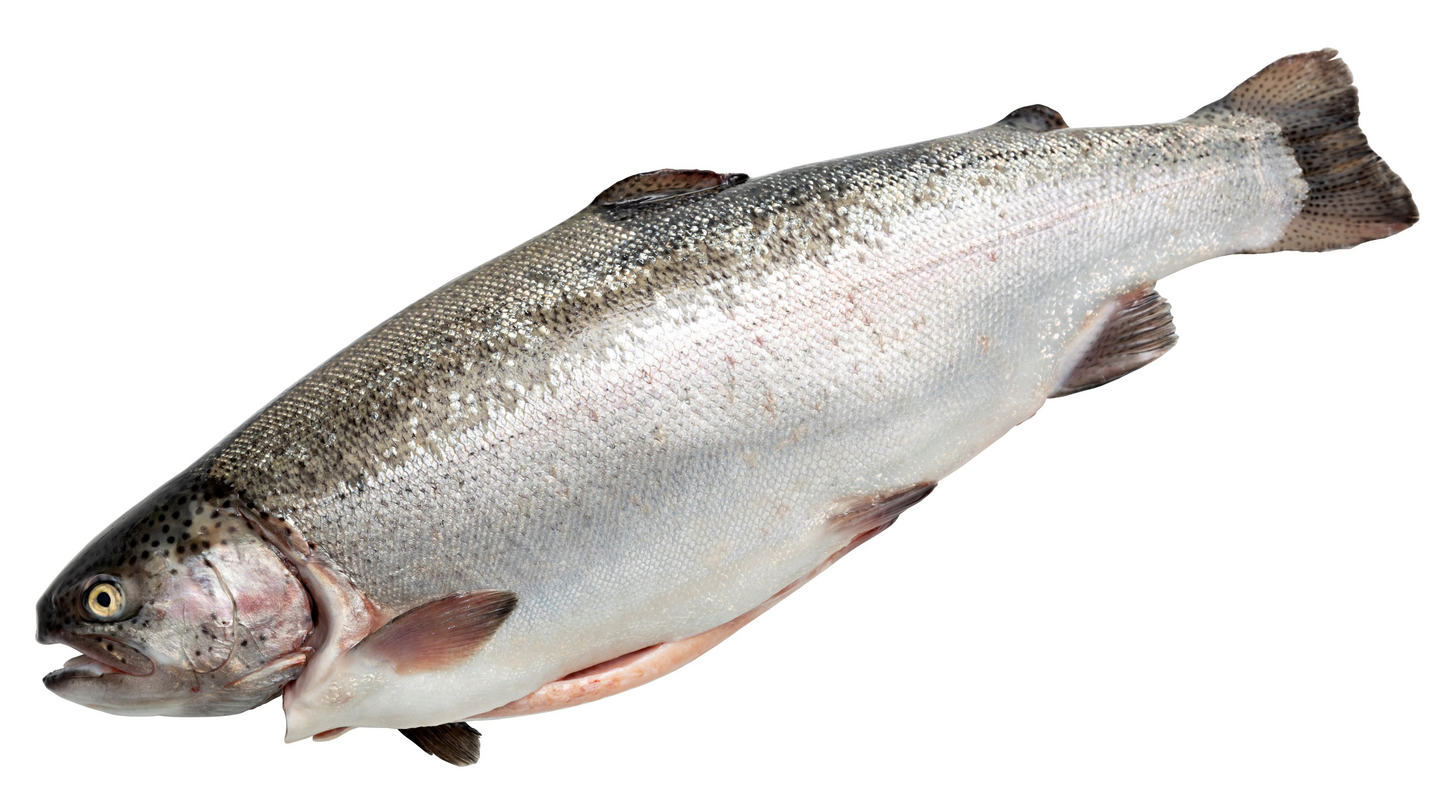 Suomalainen kokonainen kirjolohi monipuoliseen ruoanlaittoon. Yksittäisen tuotteen keskimääräinen paino on 10 000 g.