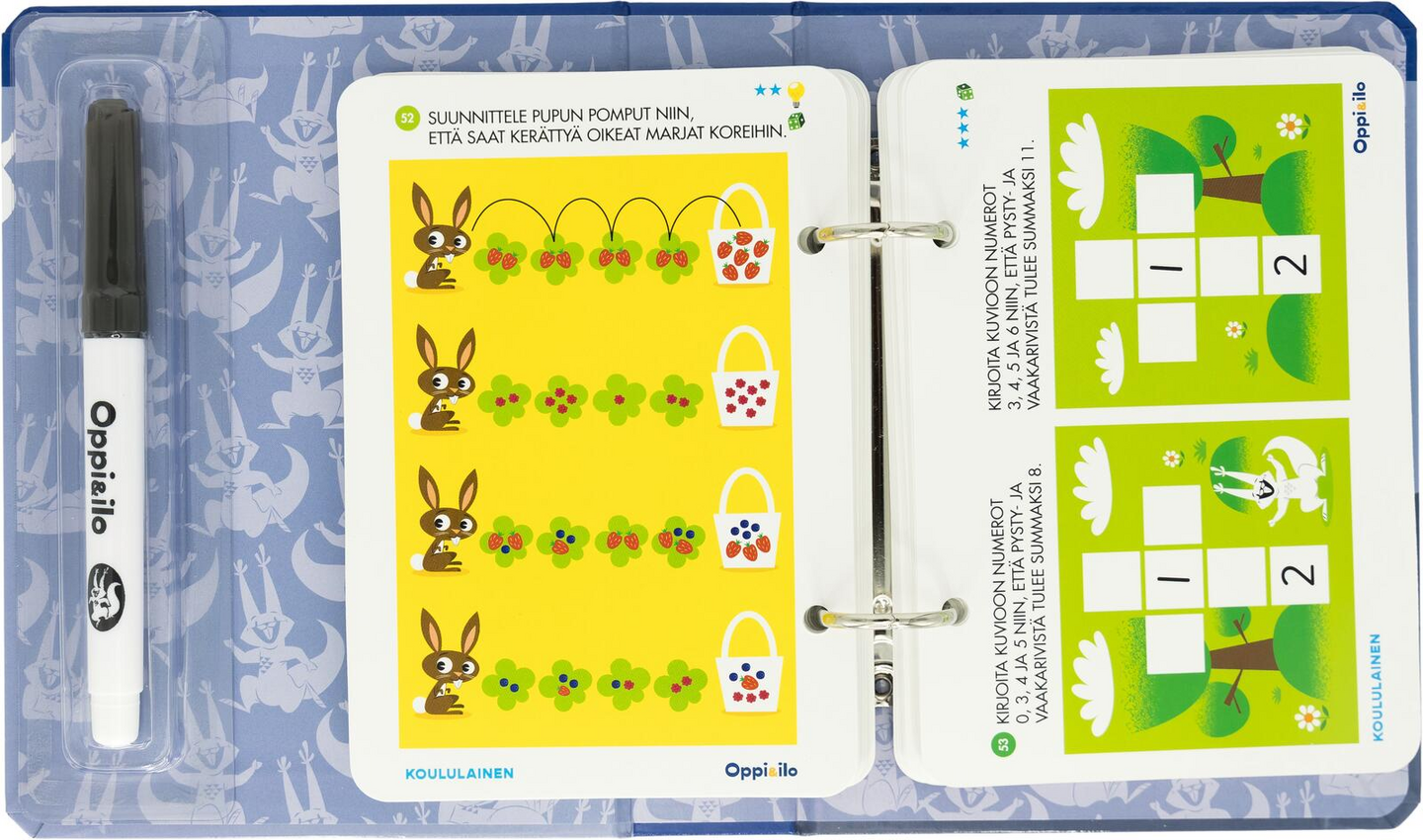 Eskarilainen on innokas oppimaan uutta. Hän on täynnä energiaa ja haluaa näyttää taitonsa! Puuhapakan monipuolisissa tehtävissä tutustutaan hauskalla tavalla kirjaimiin, pähkäillään loogista päättelykykyä vaativien tehtävien parissa ja pohditaan tunteita sekä erilaisia arjen tilanteita. Kirja sisältää 50 kaksipuolista korttia ja poispyyhittävän tussin, jolla tehtävät voi tehdä uudelleen ja uudelleen! Puuhakorttikirjan tehtäväsisältö on sama kuin Eskarilainen puuhakorteissa. Uudessa kirjaformaatissa kortit ovat helposti irrotettavissa ja takaisin kerättävissä. Kannet ovat tukevat ja suojaavat kortteja. Kynä säilyy tallessa sisäkannen kotelossa.