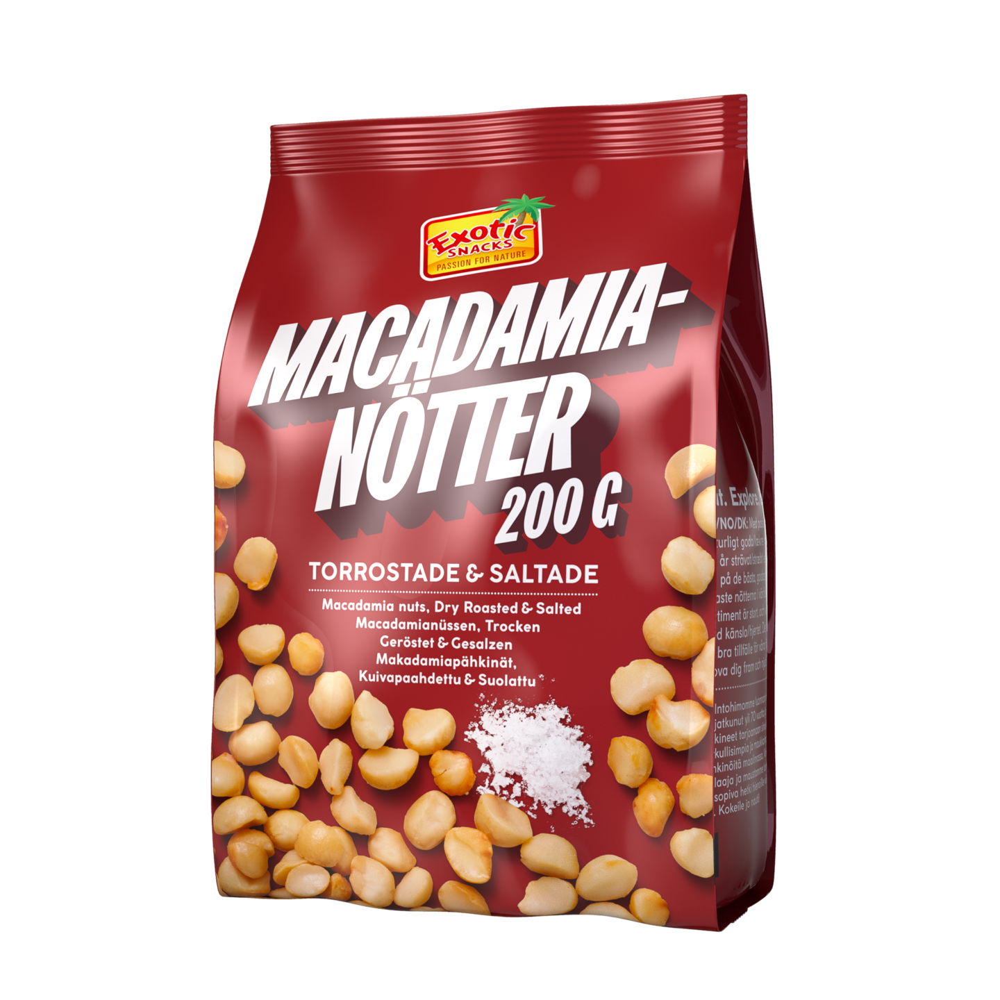 Kuivapaahdetut ja suolatut makadamiapähkinät nautittavaksi välipalana, ruoanlaitossa tai salaatteihin tai leivontaan. Makadamiapähkinällä on monia käyttötarkoituksia miedon, voisen ja hieman makean maun ansiosta. Macadamiapähkinät ovat todella herkullisia pähkinöitä ja sisältävät myös runsaasti kertatyydyttymätöntä rasvaa ja kuituja.