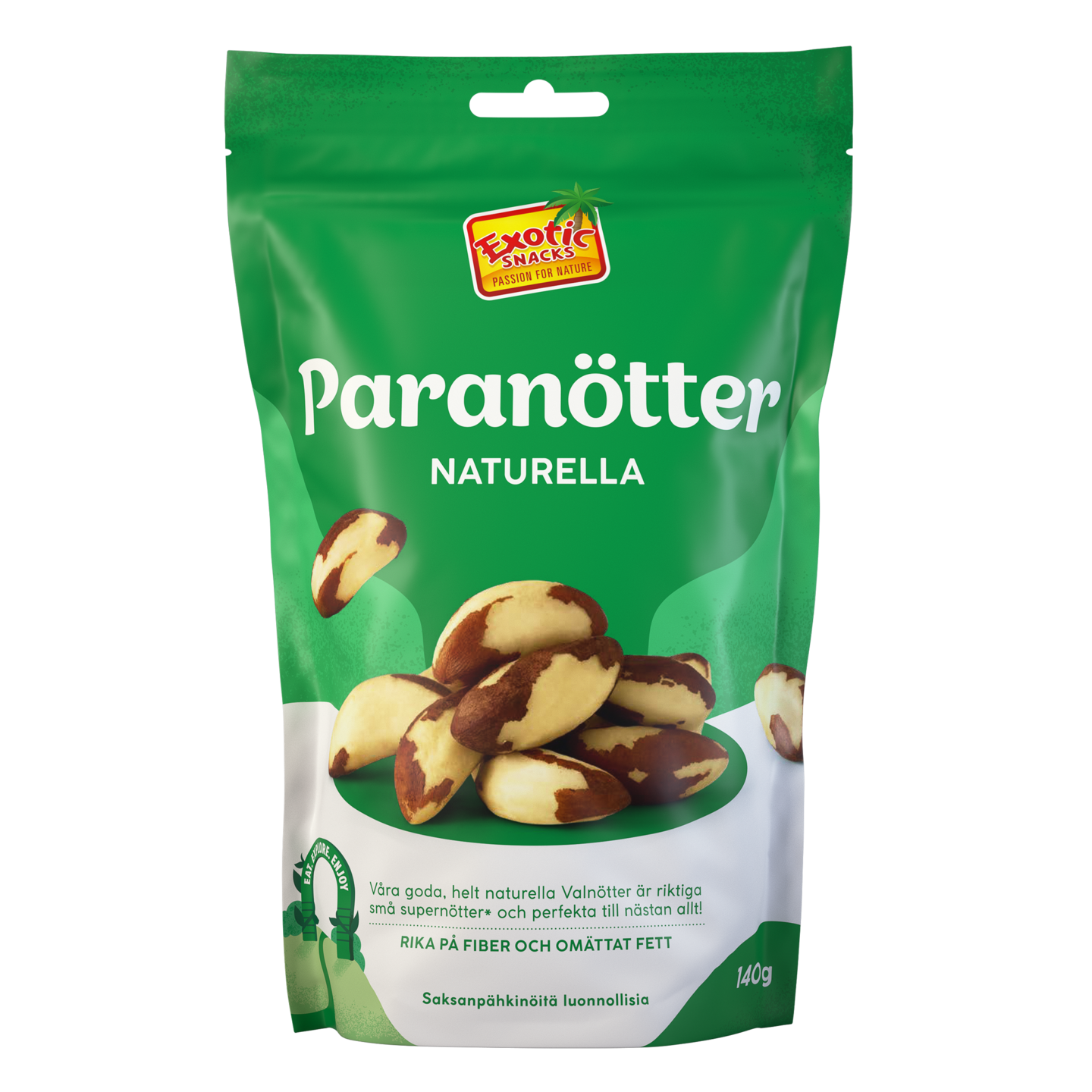Luonnollisenmakuiset parapähkinät, jolla on pehmeän pähkinäinen, kookosta muistuttava luonnollinen maku. Sisältää paljon tyydyttymättömiä rasvoja, kuitua, seleeniä ja magnesiumia.