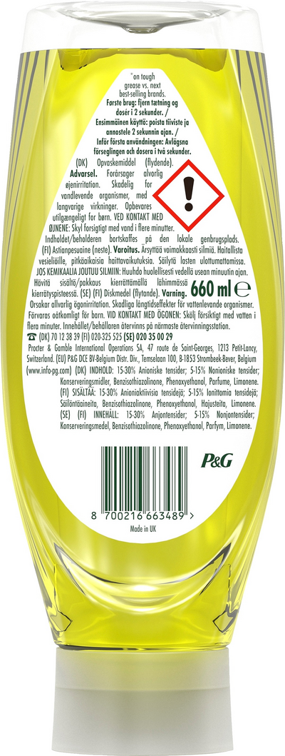 Fairy MaxPower Lemon -astianpesuaine on pakattu kätevään, ylösalaisin säilytettävään pulloon ilman kääntökorkkia, mikä tekee tiskaamisesta nopeampaa ja helpompaa.