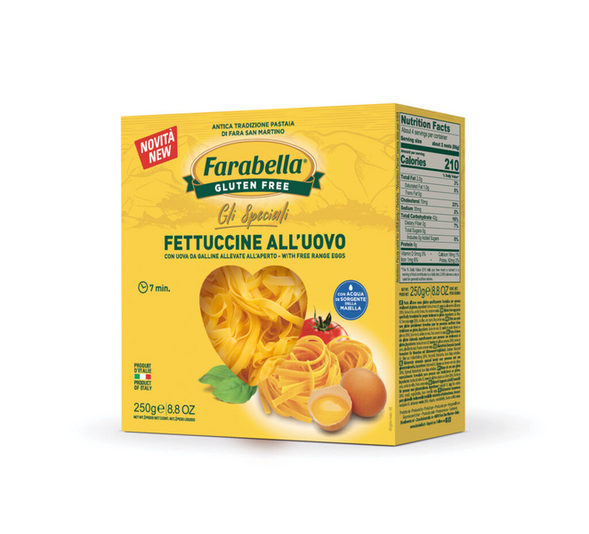 Korkealaatuisista raaka-aineista valmistettu suussa sulava gluteeniton fettuccine pasta. Pakkauksessa on neljä pastapesää.