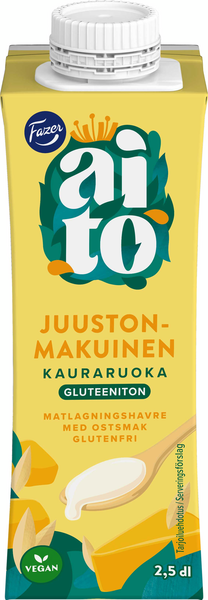 Kasvipohjainen Fazer Aito Kauraruoka Juustonmakuinen tekee ruoanlaitosta helppoa. Lisäät sillä kätevästi täyteläisyyttä ja makua kastikkeisiin ja keittoihin. Fazer Aito Kauraruoka on vegaaninen vaihtoehto kermalle. Tuote on gluteeniton ja maidoton ja sisältää kotimaista kauraa. Tuotteella on Hyvää Suomesta -merkki.