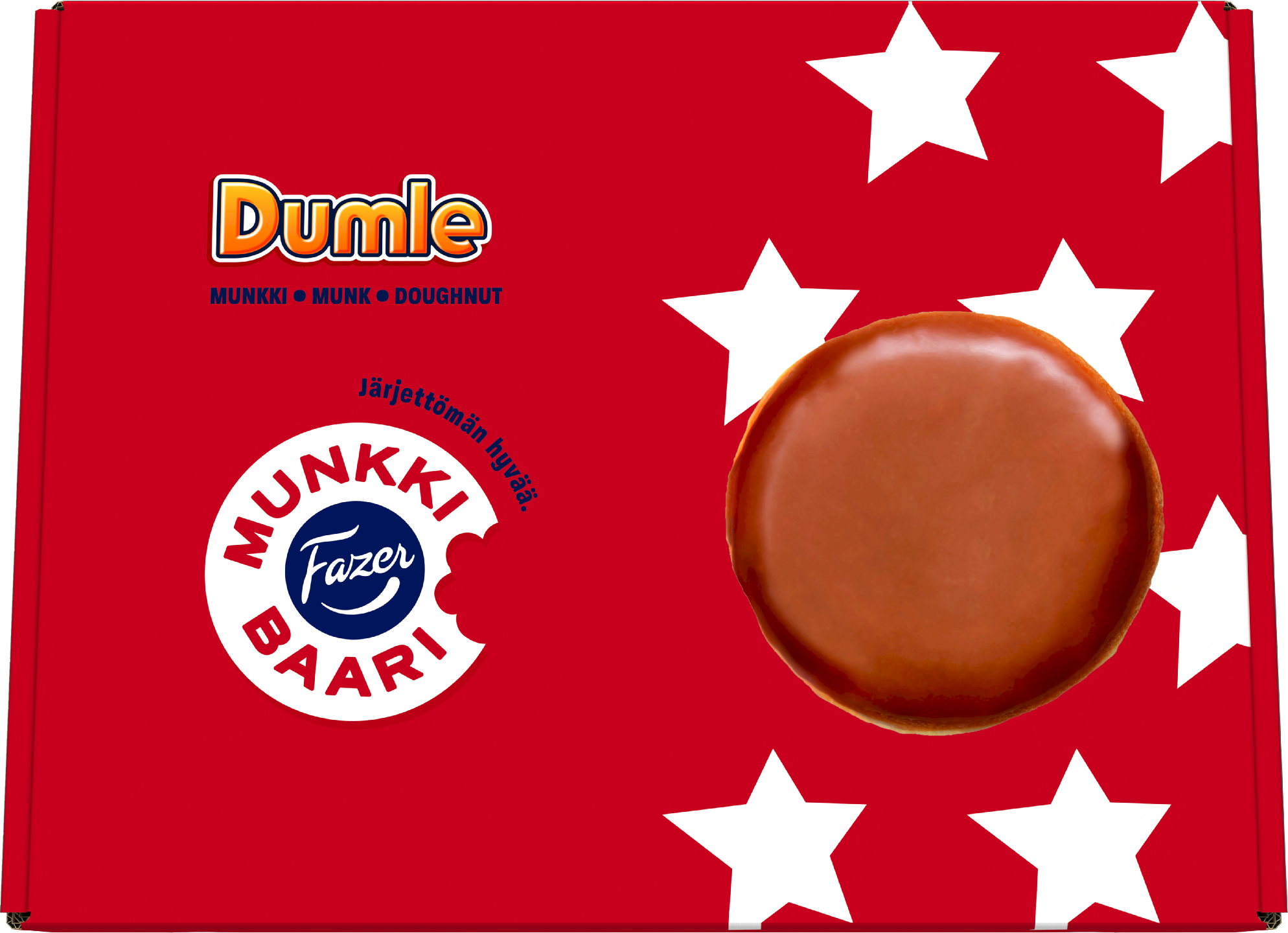 Dumle-munkilla iloa elämään! Dumle on iloinen klassikko, joka ei aikuistu koskaan. Dumle-toffeekaramellin makuinen Dumle-munkki on maistuvan riemukas seuralainen, joka saa aina hyvälle tuulelle. Tämä herkku todellakin vie kielen mennessään. Tämän tuotteen löydät kauppojen paistopisteistä.