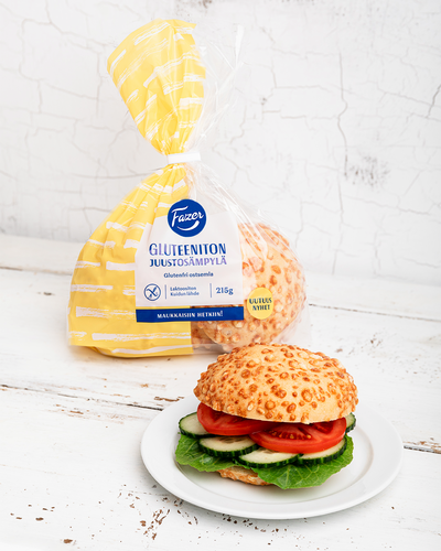 Fazer Gluteeniton Juustosämpylä - pehmeä sämpylä, jonka pinnassa reilusti juustoraastetta. Sopii niin aamupalapöytään kuin herkutteluhetkiin. Kokeile sellaisenaan tai täytä mieluisilla täytteillä! Gluteeniton ja laktoositon.