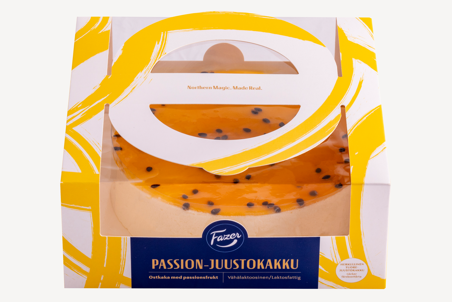 Fazerilla herkullisten konditoriatuotteiden valmistus on saanut alkunsa jo vuonna 1891, kun Karl Fazer avasi ensimmäisen konditoriansa Helsinkiin. Siitä lähtien Fazer on vaalinut herkullisten leivonnaisten valmistusta ja nykyään jokainen voi löytää oman suosikkinsa Fazerin konditoriakakkujen joukosta. Fazer Passion-juustokakku ihastuttaa suussa sulavalla pehmeydellään: herkullinen tuorejuustosisus kohtaa raikkaan passionhedelmäkuorrutteen. Aurinkoinen kakku on täydellinen tarjottava erilaisiin juhliin. Kakku on mitoitettu noin 10 hengelle.