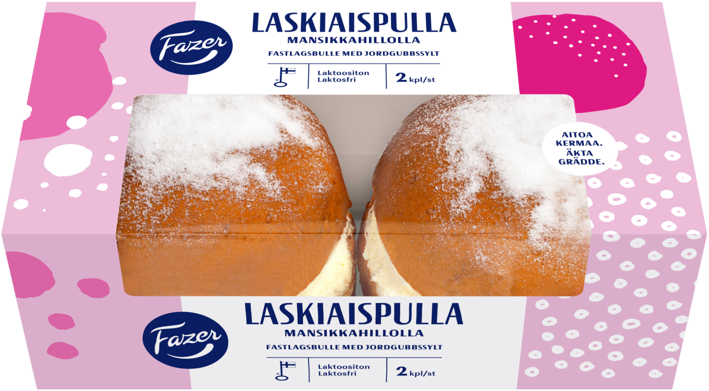 Fazer Laskiaispullat leivotaan Suomessa parhaista raaka-aineista ja täytetään aidolla kermavaahdolla ja mansikkahillolla ainutlaatuiseksi makuelämykseksi. Ne on leivottu laktoosittomaksi, jotta mahdollisimman monet voivat nauttia niiden herkullisesta mausta. Sillä mikään ei voita pulkkamäen jälkeen nautittua herkullista Fazer Laskiaispullaa.