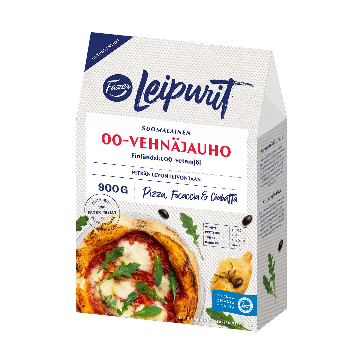 PIZZA PITKÄLLÄ LEVOLLA Nämä tipo 00 -vehnäjauhot on jauhettu tarkoin valikoidusta kotimaisesta kevätvehnästä. Tämän korkealaatuisen kevätvehnän valkuainen ja muut hyvät ominaisuudet yhdistettynä tarkkaan jauhamiseen antavat jauhoille loistavan sitkon ja mahdollistavat taikinan pitkän levon. Näin saadaan aikaan upea maku, josta herkullinen pizza tunnetaan.