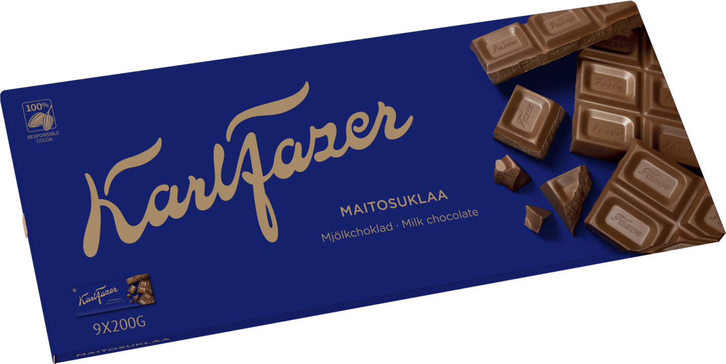 Fazerin sininen on Suomen rakastetuin suklaa, jonka ainutlaatuisen täyteläisen maun ovat taanneet parhaat raaka-aineet jo vuodesta 1922 saakka. Tunnistat tämän aidosta maidosta valmistetun suklaalevyn sinisestä kääreestä, jonka kultainen Karl Fazer -allekirjoitus toimii laadun takeena. Noudatamme kaakaonhankinnassamme Fazerin kaakaovisiota. Lue lisää www.fazercocoavision.com. Karl Fazerin Sininen suklaalevy kruunaa hetken kuin hetken ylellisellä maullaan.