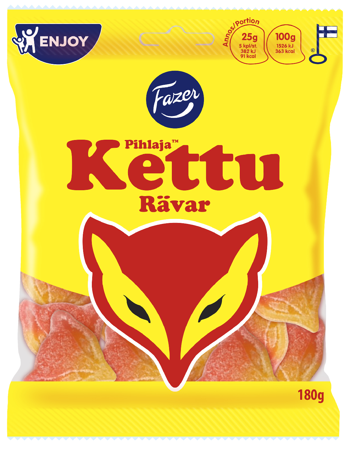 Fazerin vanhin karkki Pihlaja on saanut uuden muodon. Hauskat sokeroidut ketun naaman muotoiset hedelmäiset karkit maistuvat aivan samalta kuin tuttu Pihlaja-marmeladi! Vegaaniset Kettukarkit ovat gelatiinittomia ja ne on valmistettu luontaisilla väreillä.