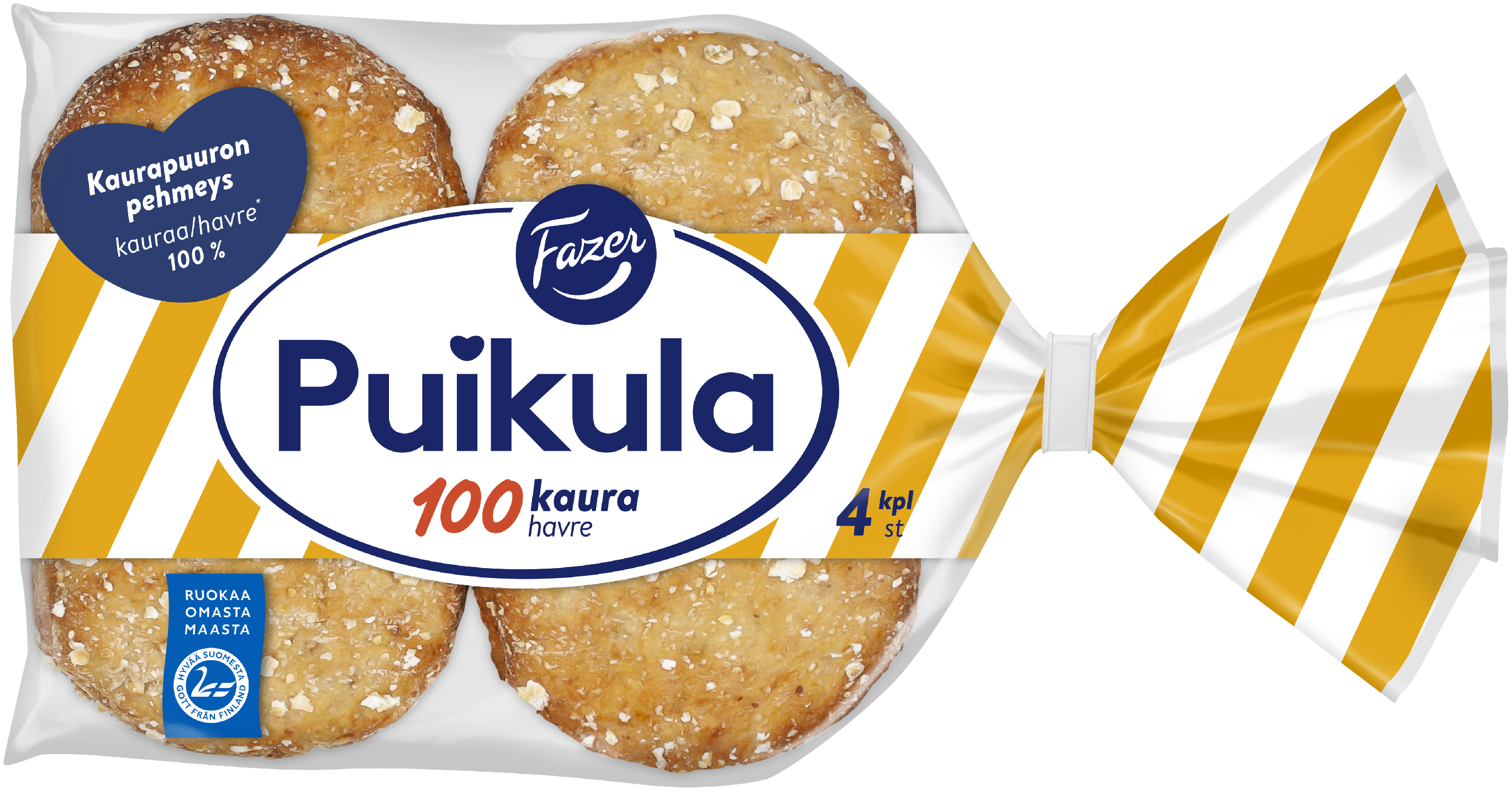 Fazer Puikula 100Kaura on uskomattoman pehmeä ja herkullinen kauraleipä. Sen maun ja pehmeyden salaisuus on haudutetussa kaurapuurossa, jonka ansiosta leipä tuntuu pehmeältä ja tuoreelta monta päivää. Leipä leivotaan Suomessa ja on pakattu 4 kpl 220g pussiin.