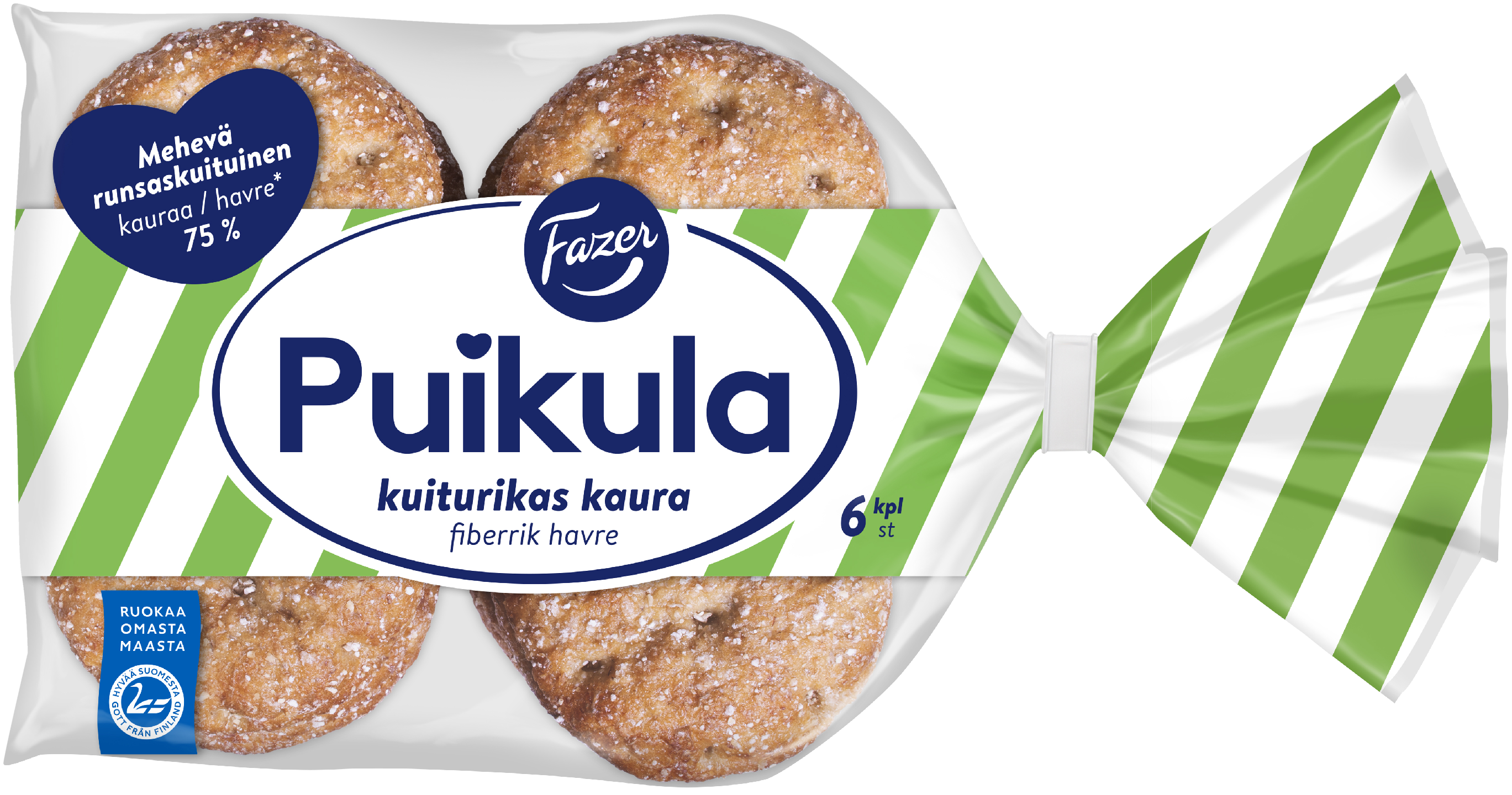 Tämä uutuusleipä on leivottu haudutettuun kaurapuuroon. Leipätaikinan pohjana oleva puuro tuo leipään pehmeän, mehevän ja useamman päivän tuoreen tuntuisena pysyvän rakenteen. Herkullisen maun lisäksi tässä uutuudessa on runsaasti kuitua (9,1 %). Leivonnassa käytetyistä viljoista 60 % on täysjyvää ja 75 % kauraa. Uutuus sopii erityisen hyvin niihin arkisiin aamiaishetkiin, kun kaipaa ravitsevaa, terveellistä syötävää, jolla saa hyvän startin päivään. Uutuus leivotaan Fazerin Vantaan leipomossa kotimaisista viljoista.