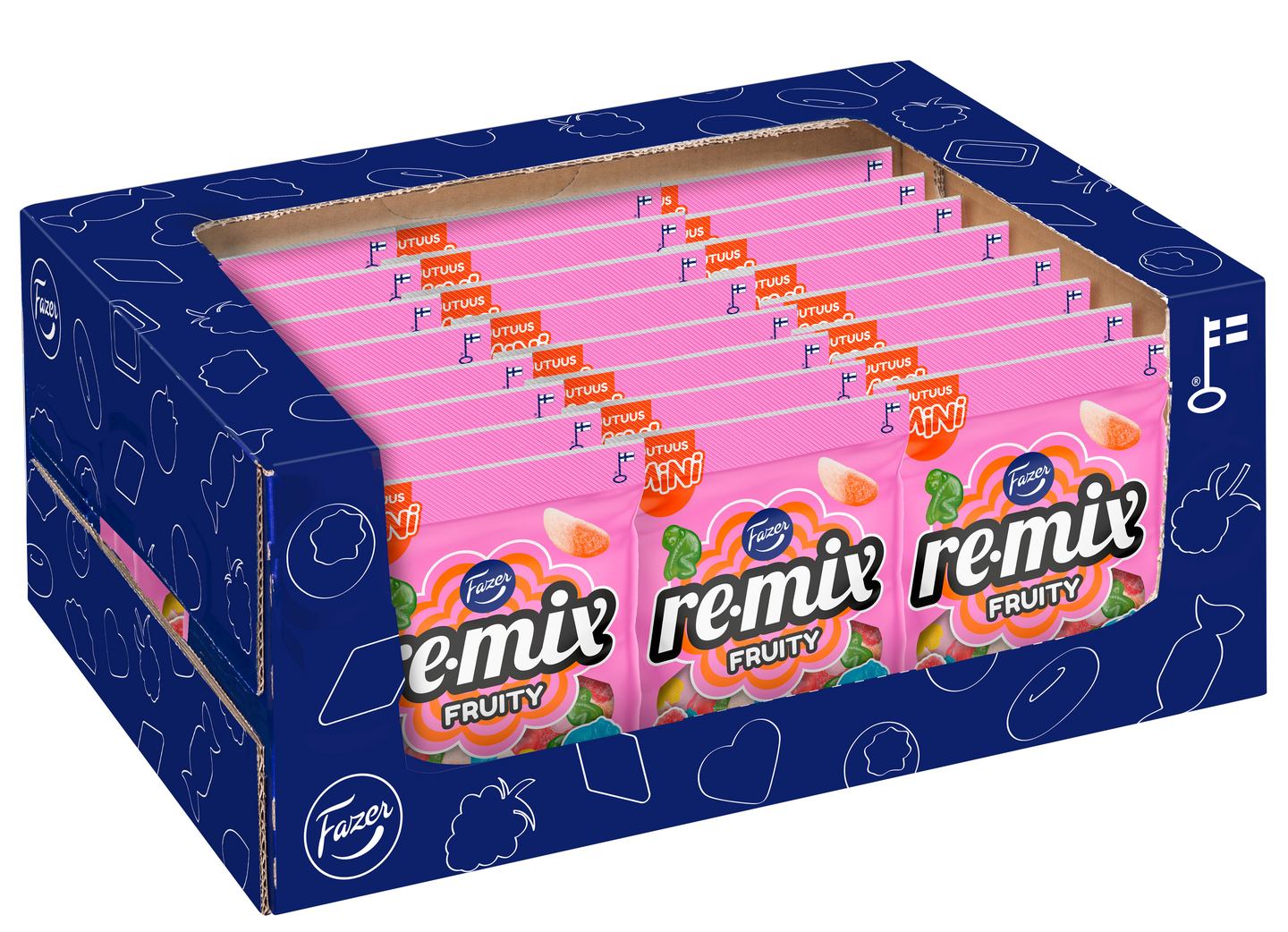 Tuttuja suosikkikarkkeja ja uusia herkullisia sekoituksia taattuun Remix-tyyliin – pienempään herkutteluun sopivassa koossa! Olitpa sitten suklaan tai hedelmäkarkkien ystävä, Remix Mini -karkkipusseista löydät oman kätevän kokoisen sekoituksesi. Remix Mini Fruity on sekoitus erilaisia hedelmäkarkkeja: kirpeitä meloneja, makeita Amazon-eläimiä ja pehmeitä mansikkavaahtoja. Nappaa Remix Mini -pussi mukaan matkalle tai nauti pieneen makeanhimoon.