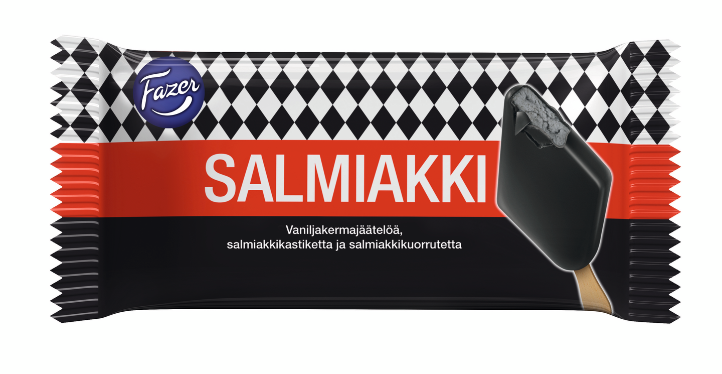 Fazer Salmiakki jäätelöpuikko tuo klassisen herkun jäätelöaltaille. Musta vaniljakermajäätelö, salmiakkikastike ja salmiakkikuorrute luovat yhdessä herkullisen yhdistelmän. Fazer-jäätelöt - Maut, joita jo rakastat. Fazer-jäätelöiden tuoteperhe koostuu suosituista Fazerin makeisbrändeistä. Fazer-jäätelöt valmistetaan suomalaisesta kermasta, Turengin jäätelötehtaalla.