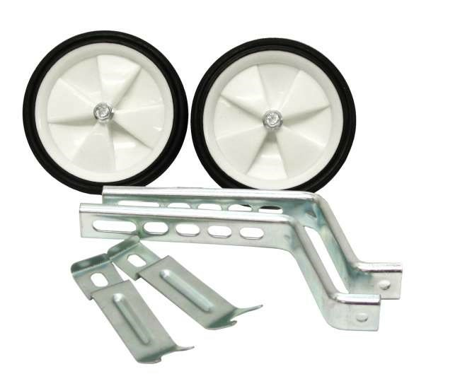 Helposti säädettävä, yleismallinen apupyöräsarja 12''-20'' lastenpyörille. Soveltuu useimpiin 20'' pyöriin. Leveät tukiraudat ovat turvalliset ajossa. Kaikki kiinnitystarvikkeet mukana pakkauksessa. Kumipintaiset, mustat renkaat. Loistava hinta/laatu-suhde