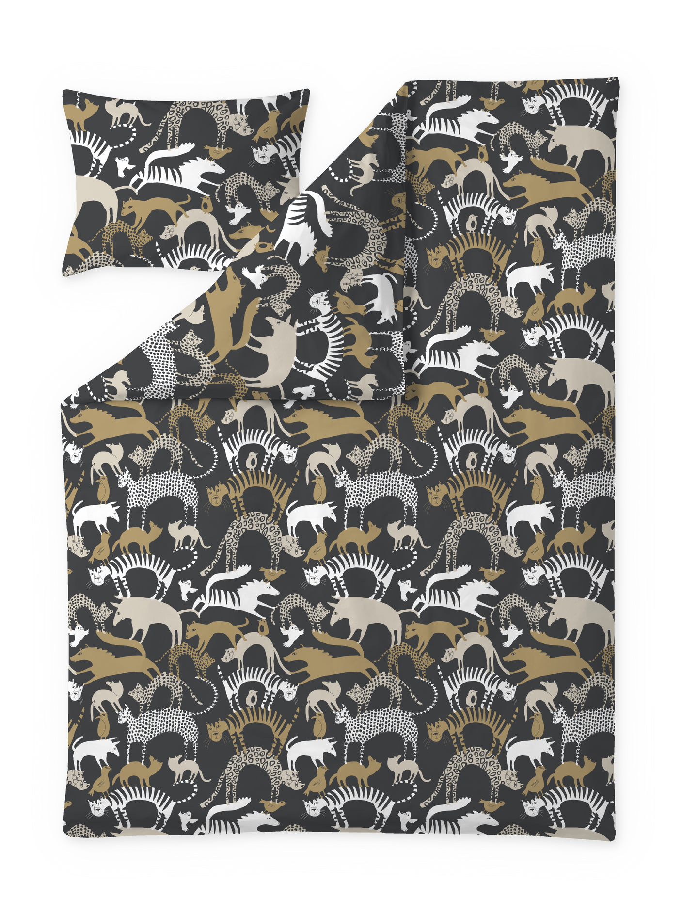Hyvät yöunet alkavat Käpälämäeltä! Tätä pussilakanasettiä koristava Käpälämäki-kuosi on eläinaiheisilla kuoseillaan hurmanneen Jenna Kunnaksen käsialaa. Kuosissa mitä suloisin lauma kaikenkarvaisia ja -höyhenisiä eläimiä ovat yksissä tuumin kokoontuneet Käpälämäkeen, jossa tilaa löytyy jokaiselle eläimelle.