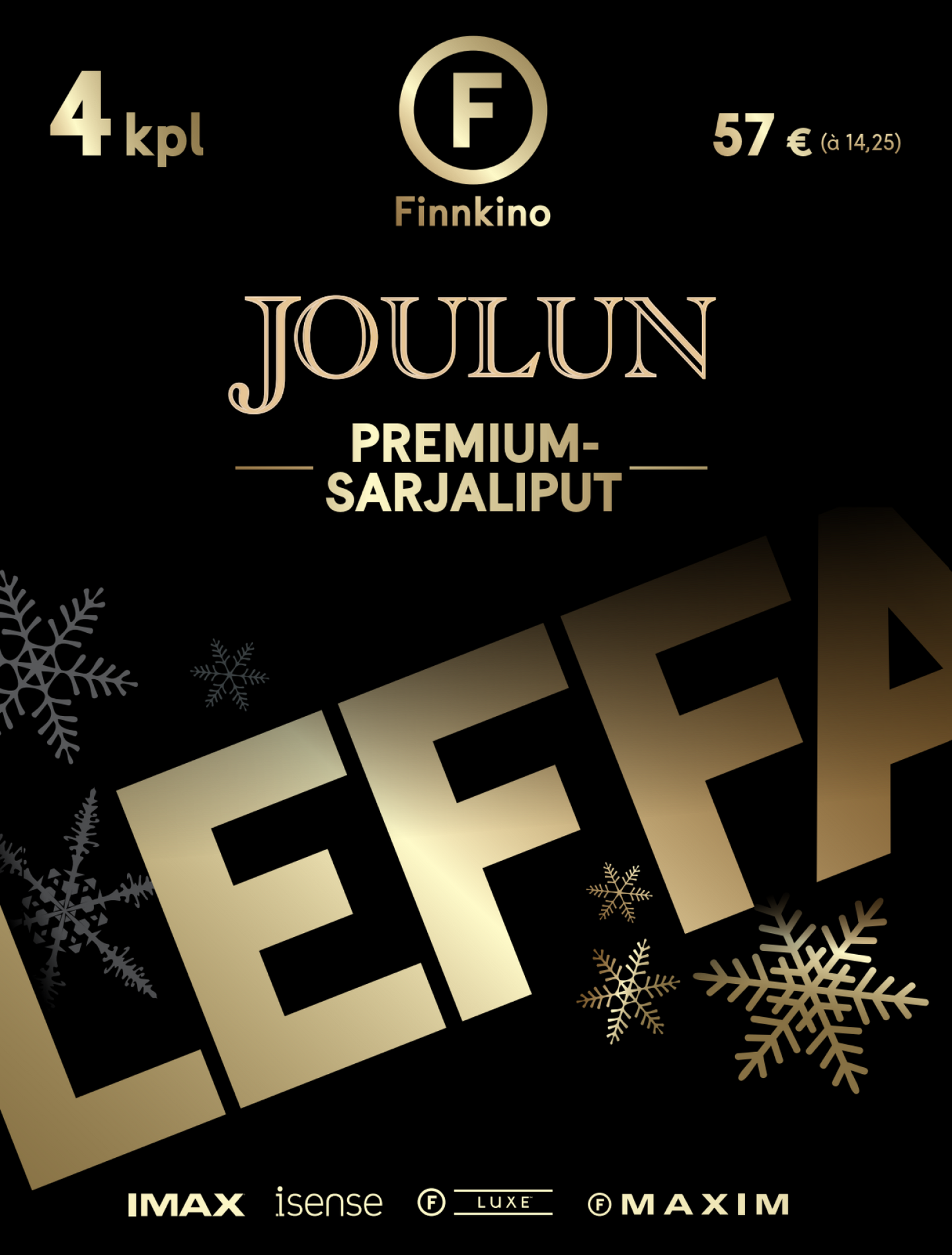 Liput käyvät kaikkiin elokuvanäytöksiin Finnkinon teattereissa, myös Premium-salien näytöksiin ilman lisämaksua. Ei palautusoikeutta. Vaihda joululippu näytöslippuun Finnkinon sovelluksessa, finnkino.fi verkkokaupassa tai Finnkinon teatterissa. Vanhentuneita lippuja ei vaihdeta. Liput voimassa 25.12.2024-20.5.2025.