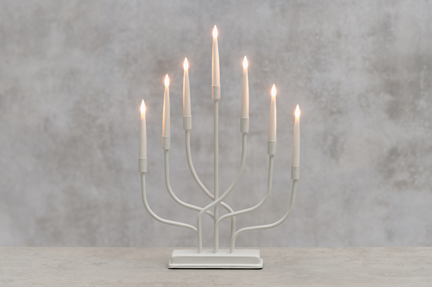 Paristokäyttöinen kynttelikkö on helppo asettaa minne vain luomaan tunnelmaa. Kauniissa valkoisessa kynttelikössä on seitsemän haaraa ja klassinen muoto.
