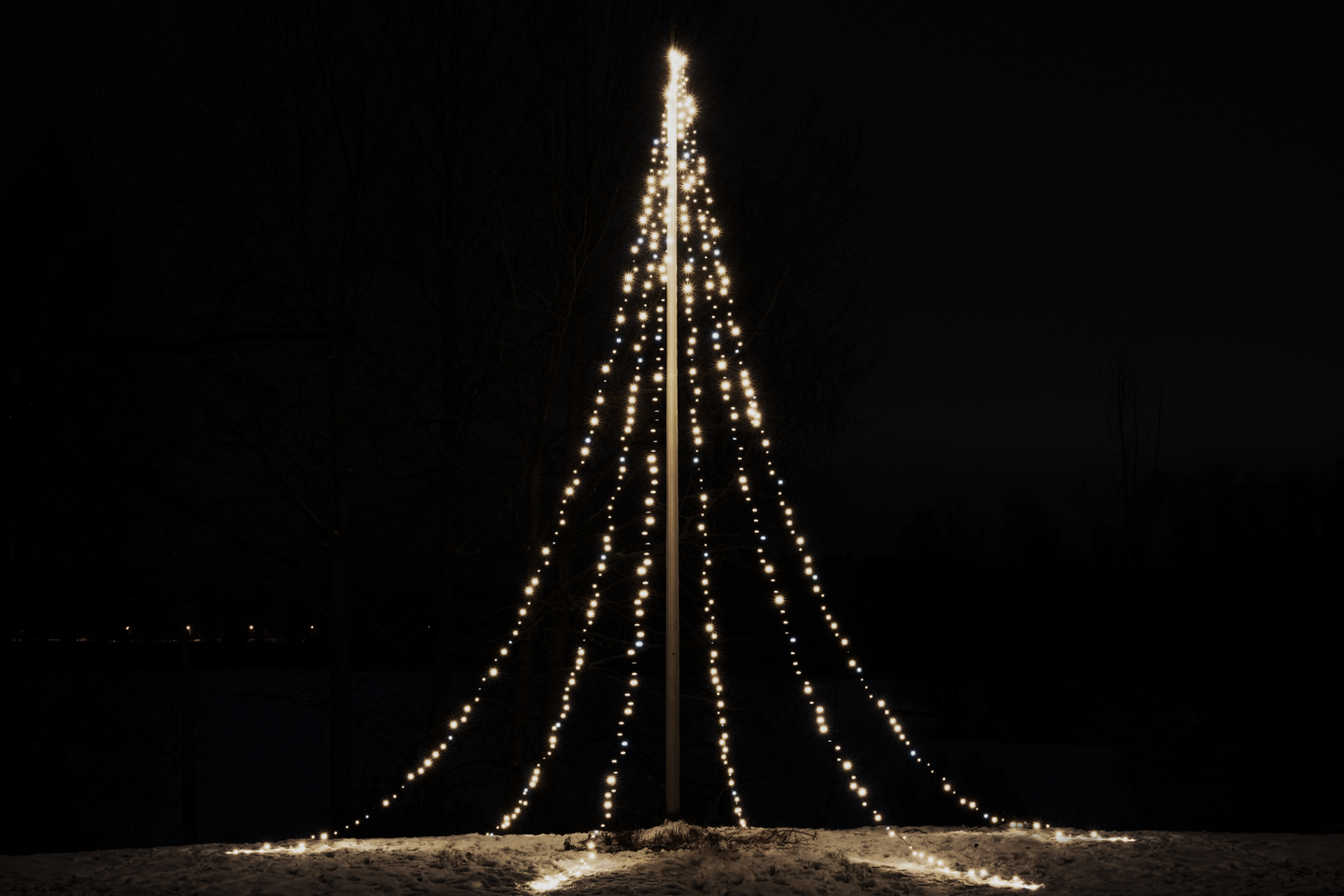 Puiden, erilaisten kehikoiden tai lipputangon koristamiseen sopiva näyttävä LED-sarja.