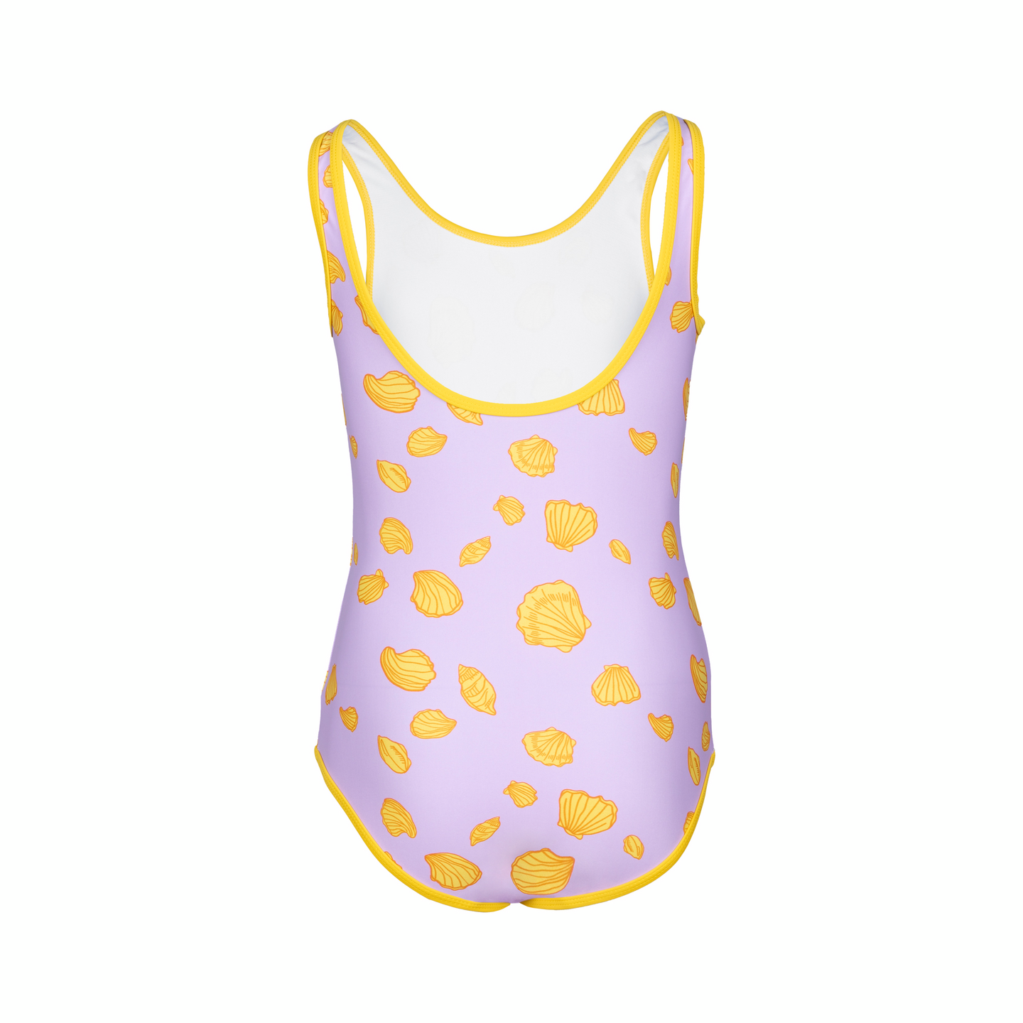 Tyttöjen uimapuku käytännöllisellä uimarinselällä ja simpukkakuosilla. Joustavaa ja nopeasti kuivuvaa uima-asu neulosta. Uimapuku on tehty kestämään käyttöä, ja neuloksen käsittely suojaa materiaalia kloorilta, merivedeltä ja auringolta. Valmistettu Global Recycled Standard -sertifioidusta kierrätetystä polyamidista ja elastaanista.