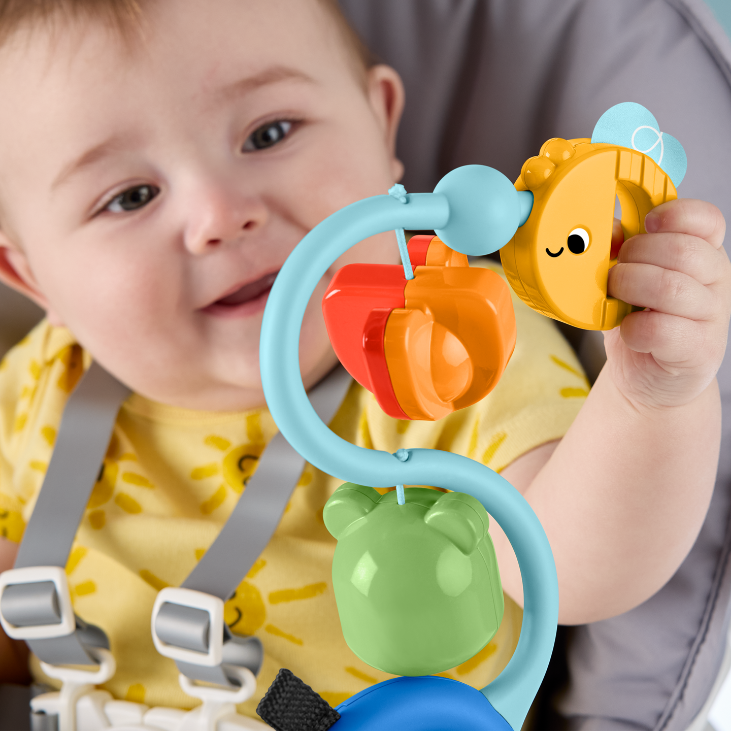 Fisher-Price -imukuppikiinnitteinen vauvan lelu tarjoaa runsaasti tutkittavaa ja viihdykettä! Lelussa on monipuolisia aistikokemuksia: pyöritettävä helistin, kilisevä kukka, sammakkokello, helistinpallo, rapisevat nauhat ja pyöritettävä mehiläinen. Lelu pyörii 360 astetta ja pysyy tukevasti paikallaan imukupin ansiosta. 6 kk+