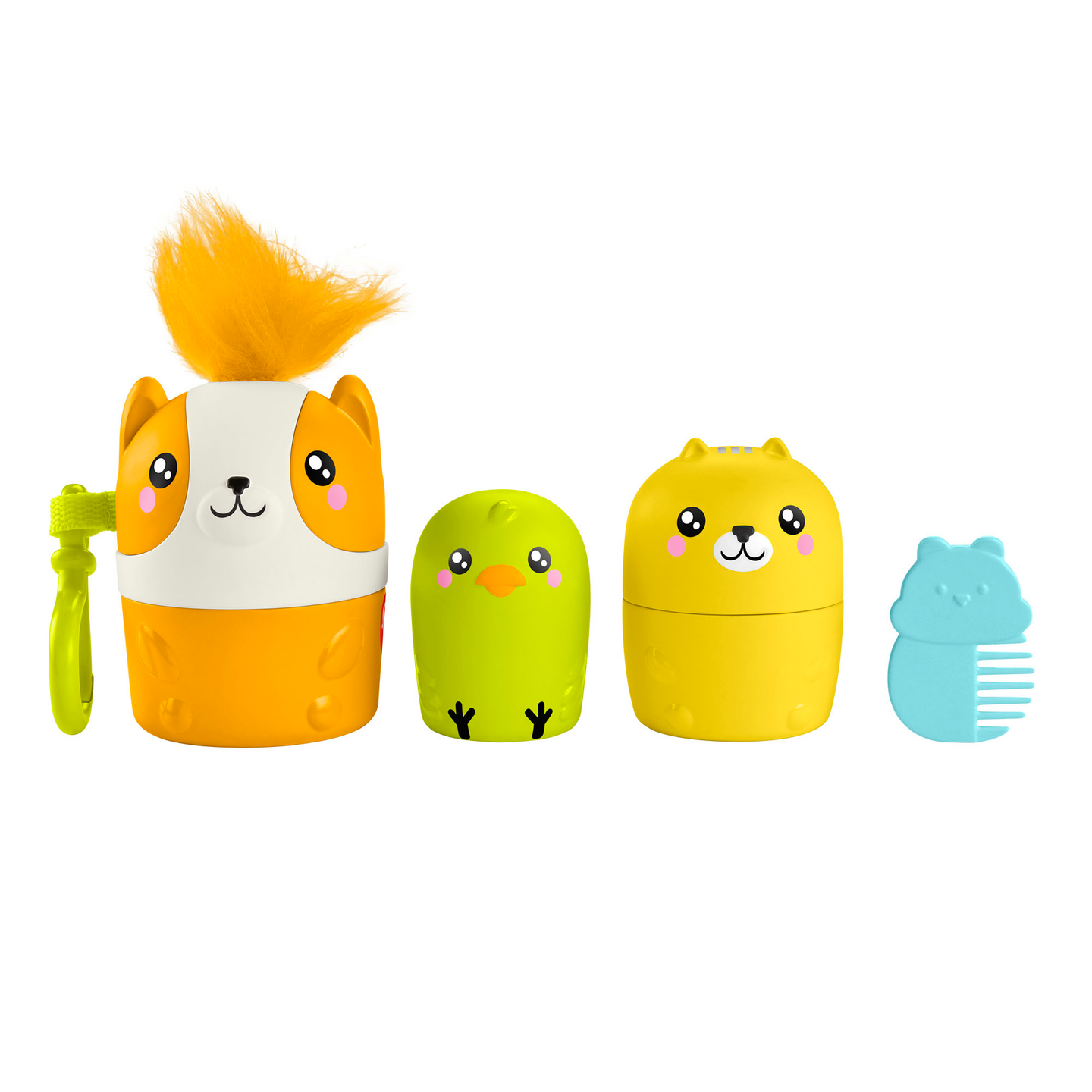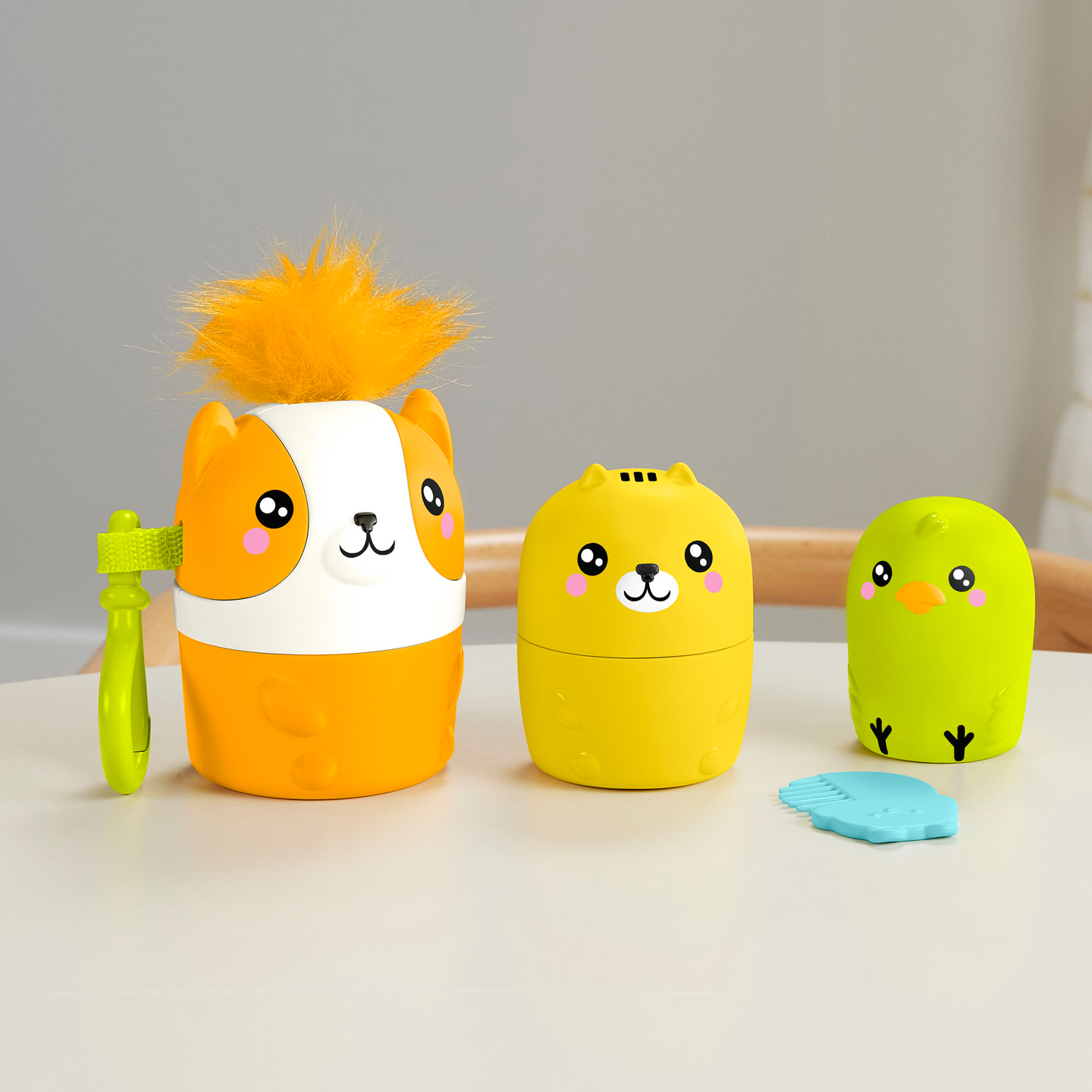 Sisäkkäin mahtuvat söpöt eläinhahmot opettavat lapselle hahmotuskykyä. Leikkisetti sisältää kolme sisäkkäin mahtuvaa eläinhahmoa ja kamman, jolla voit harjata koiranpennun hiustupsun. Kätevä ripustuslenkki pitää lelut mukana päivän puuhissa. 3+