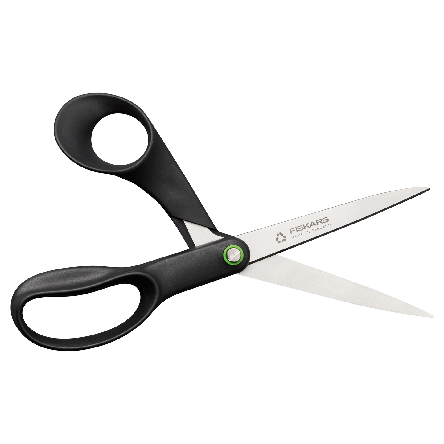 Fiskars Functional Form ReNew -yleissakset soveltuvat täydellisesti monenlaisiin kodin leikkuutöihin, ja ne on valmistettu vähintään 70-prosenttisesti kierrätysmateriaaleista. Korkealaatuiset ruostumattomasta teräksestä valmistetut terät takaavat erinomaisen leikkuutehon. Kierrätysmuovin ja lasikuidun yhdistelmästä valmistettu ergonominen kädensija tarjoaa ainutlaatuisen käyttömukavuuden ja hyvän otteen. Sakset on valmistettu ympäristösertifioidulla Suomen tehtaallamme, ja ne on viimeistelty käsin. Sakset sopivat oikeakätisille. Muiden Fiskars-tuotteiden tapaan sakset on suunniteltu kestämään aikaa ja käyttöä.