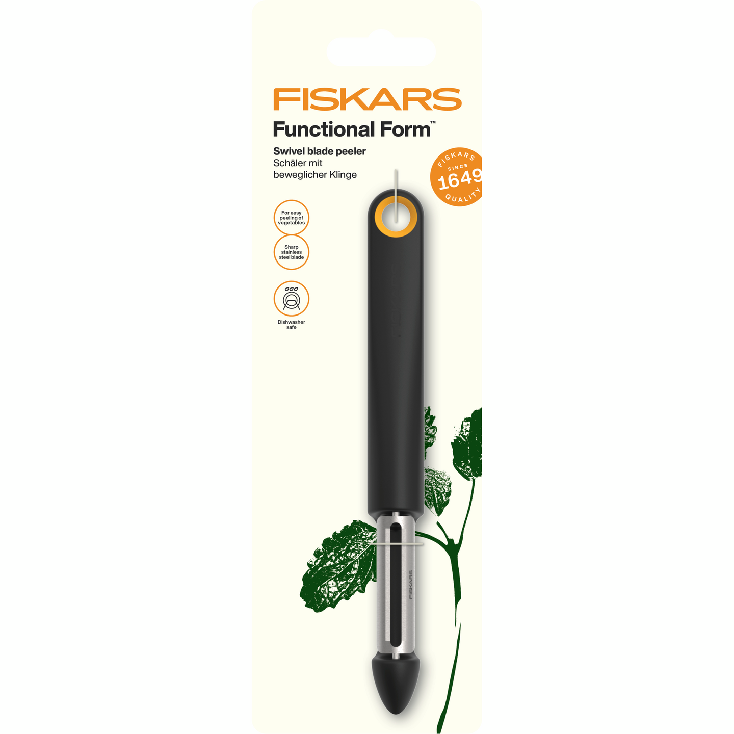 Pyörivällä terällä varustettu, älykkäästi muotoiltu Fiskars Functional Form -kuorija on joka kodin peruskeittiöväline, jonka terän leikkaavat reunat sopivat monenlaisten eri hedelmien ja vihannesten kuorimiseen. Pyörivä terä myötäilee kuorittavan ruoka-aineen muotoa, taaten tarkan lopputuloksen pienellä vaivalla. Terävän kärjen ansiosta vaurioituneiden osien poistaminen onnistuu näppärästi ja siististi, ja kompakti kuorija on helppo säilöä, ja sen entistä ohuempi, käyttömukava kahva sopii kaikenkokoisille käsille. Kuorija tarjoaa helppoutta ja tehokkuutta kuorit sitten perunoita, omenoita tai vaikka kurkkuja. Konepesun kestävä kuorija on helppo käyttää, pestä ja säilöä, mikä tekee siitä lyömättömän apurin arjen ruoanlaitossa.