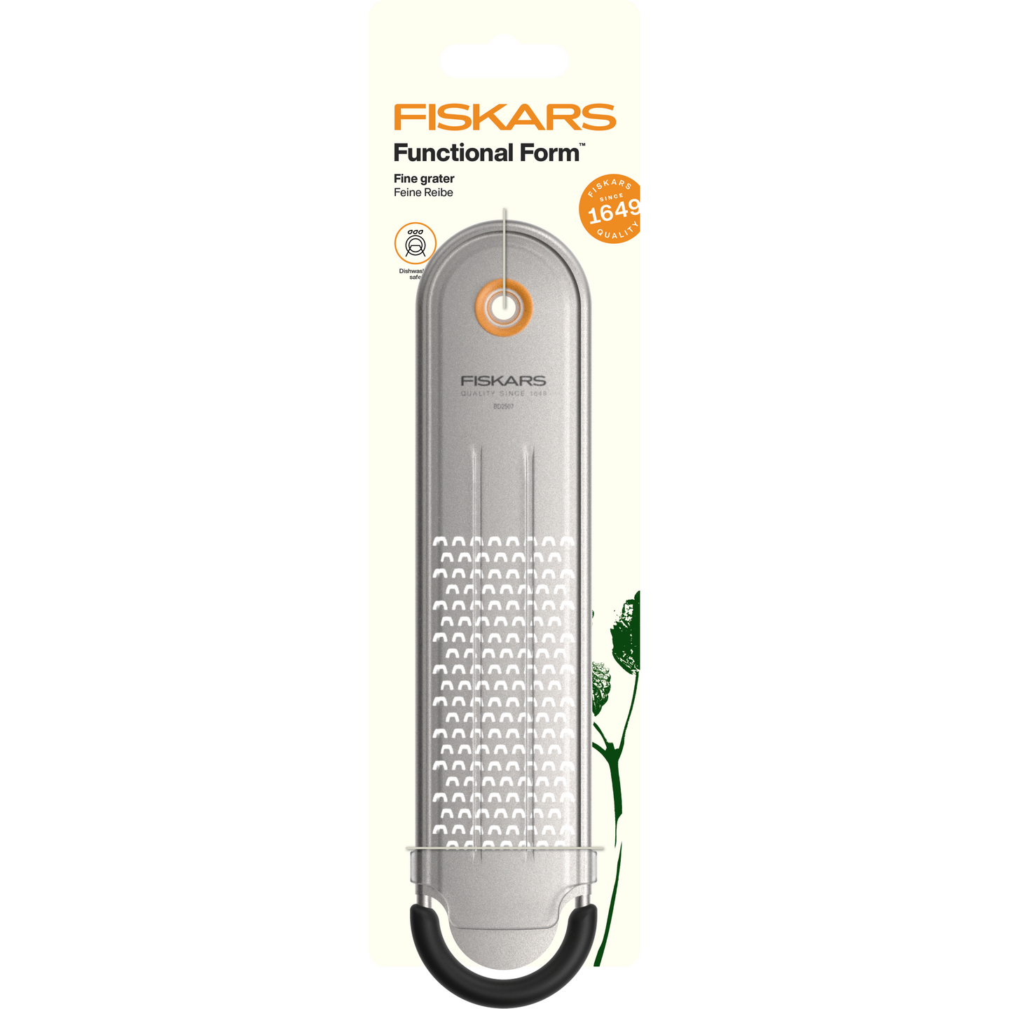 Hieno Fiskars Functional Form -raastin on nerokkaasti muotoiltu joka kodin peruskeittiöväline, joka sopii esimerkiksi kovien juustojen, inkiväärin ja suklaan raastamiseen. Terävä, korkealaatuinen terä takaa tasaisen ja tarkan lopputuloksen, ja se sopii monenlaisten ruoka-aineiden hienoon raastamiseen. Sisäänrakennettu teräsuojus lisää turvallisuutta ja sopii pohjan kaapimiseen raastamisen jälkeen, jotta mitään ei menisi hukkaan. Konepesun kestävä, kompakti raastin on helppo käyttää, puhdistaa ja säilöä, mikä tekee siitä lyömättömän apurin arjen ruoanlaitossa.