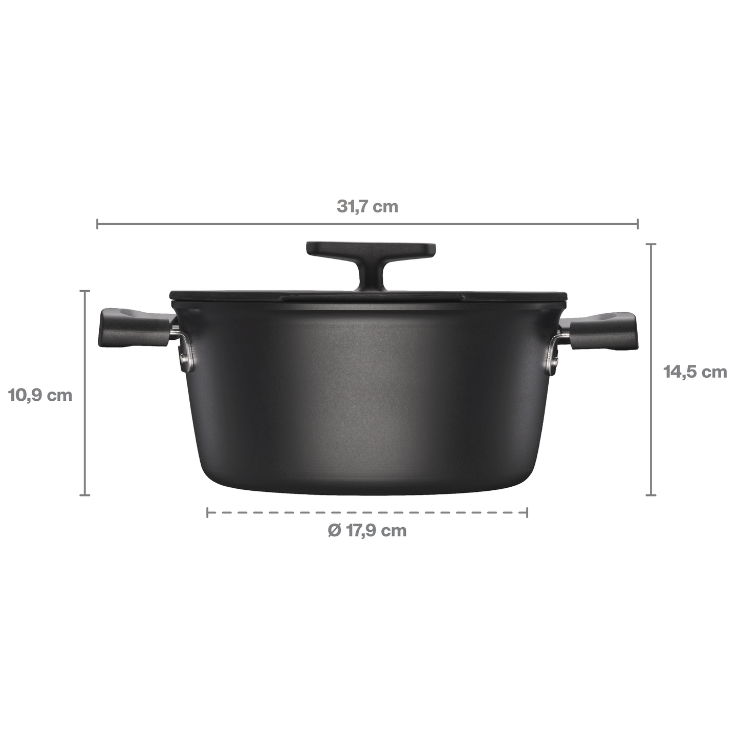 Haasteita pelkäämätön, tarttumaton Fiskars Hard Face -kattila 3,5 L sopii ahkeraan käyttöön ja ruoanlaittoon korkeissa lämpötiloissa sekä erityisesti maito- tai vesipohjaisten keittojen, kastikkeiden ja puurojen valmistukseen. Fiskars Hard Face -sarjan tarttumaton, keraaminen Ceratec™ Superior -pinnoite tekee ruoanlaitosta vaivatonta. Helppokäyttöinen ja helposti puhdistettava tarttumaton pinnoite ruskistaa eri ruoat kauniisti, ja se soveltuu kananmunien, kasvisten, lihan ja siipikarjan vaivattomaan paistamiseen sekä kalan ja tofun kaltaisten hellävaraista käsittelyä vaativien ruokien valmistukseen. Korkeat laatukriteerit täyttävä kattila on 100 %:sti kierrätettyä alumiinia, ja se lämpenee tehokkaasti ja nopeasti kaikenlaisille liesillä, mukaan lukien induktioliedellä. Vankka energiapohja toimii erinomaisesti kaikenlaisilla liesillä, mutta eniten hyötyä siitä on keraamisella liedellä, jolla se lämpenee 50 % nopeammin ja käyttää 30 % vähemmän energiaa lämmönsiirrolla. Läpinäkyvässä, kuumuudenkestävässä lasikannessa on kaksi eri kaato-ominaisuutta. Kattila on uuninkestävä 150 asteeseen asti, ja sen maksimipaistolämpötila on 270 astetta. Valmistettu Suomessa.