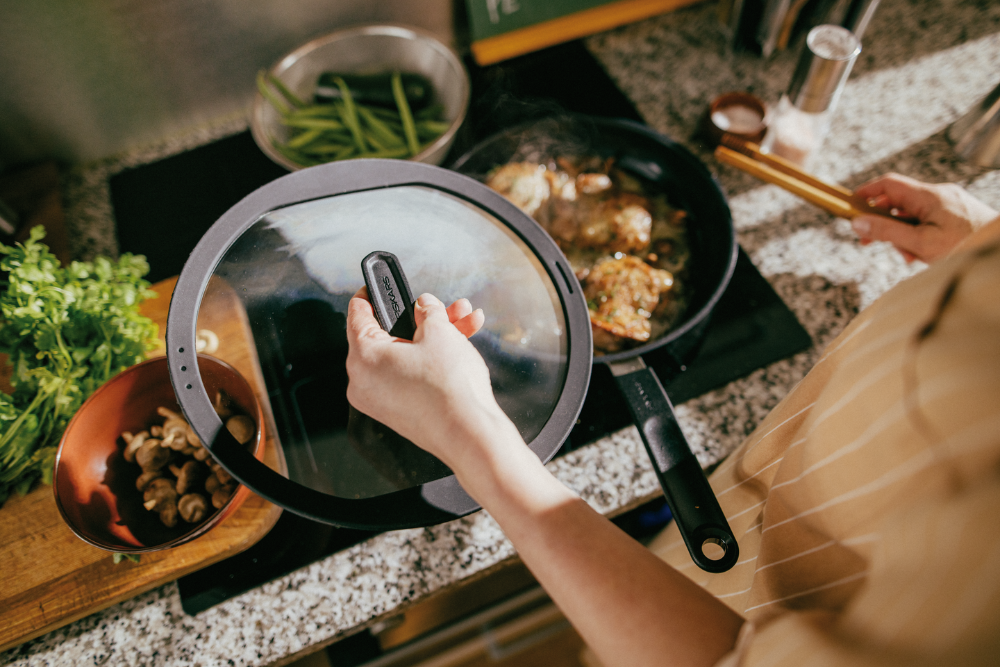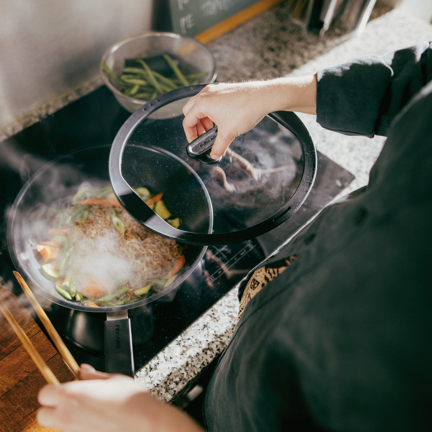 Monikäyttöinen lasikansi sopii kaikkiin Fiskarsin 28 cm paistinpannuihin, paistokasareihin ja wokkipannuihin. Silikonireunainen lasikansi varmistaa tiiviin ja hiljaisen istuvuuden. Kannen kaksi erilaista kaato-ominaisuutta helpottavat nesteiden valuttamista ilman sotkua. Kansi on konepestävä. Suunniteltu Suomessa.