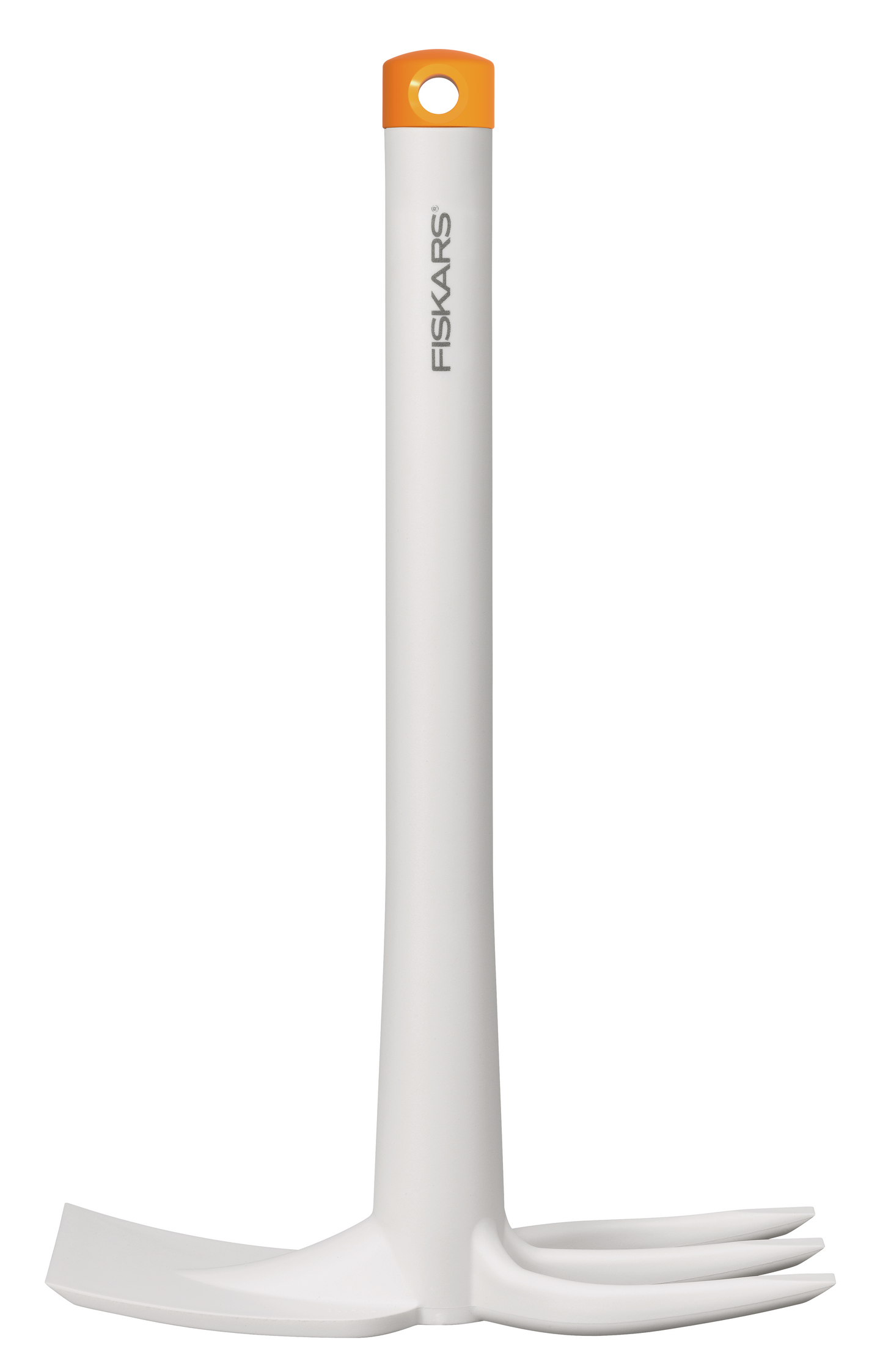 Valkoinen kuokka on kätevä, hieman pidempivartinen istutustyökalu, jonka kaksoispään ansiosta suoriudut useista puutarhatöistä helposti.