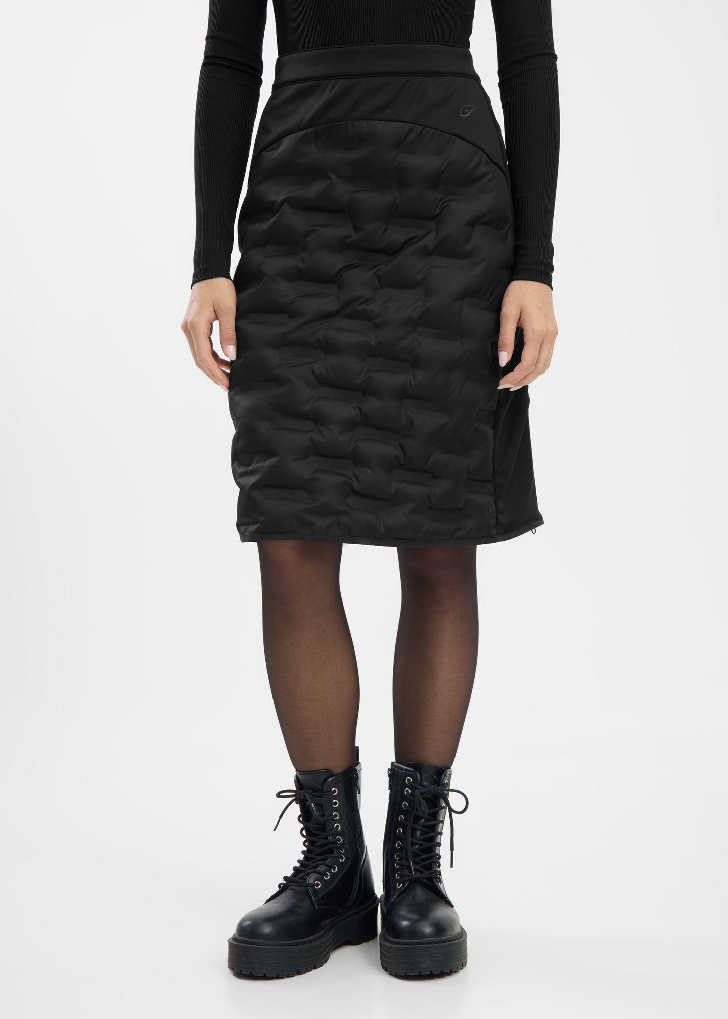 Naisten toppahame, jossa on läpiaukeava vetoketju sivusaumassa pukemisen helpottamiseksi. Hame lämmittää hyvin kylmillä ja viileillä keleillä housujen päälle puettuna.