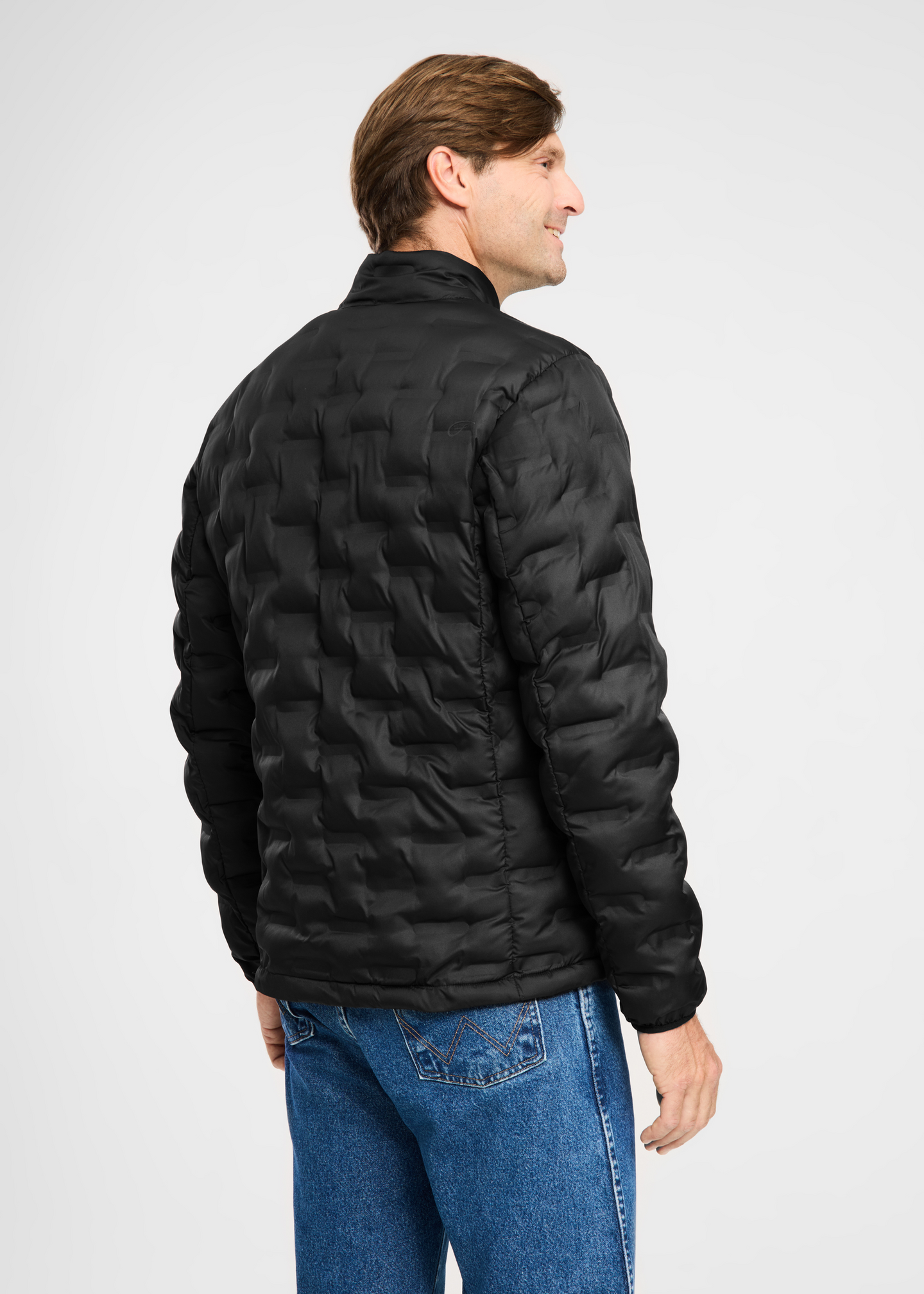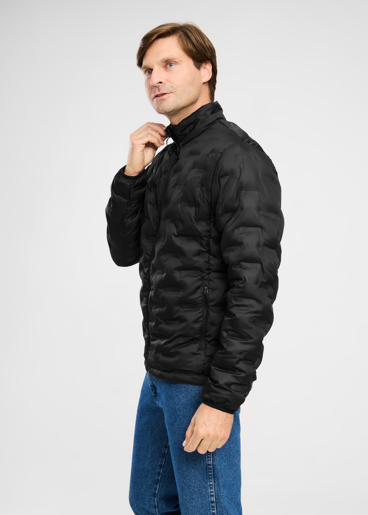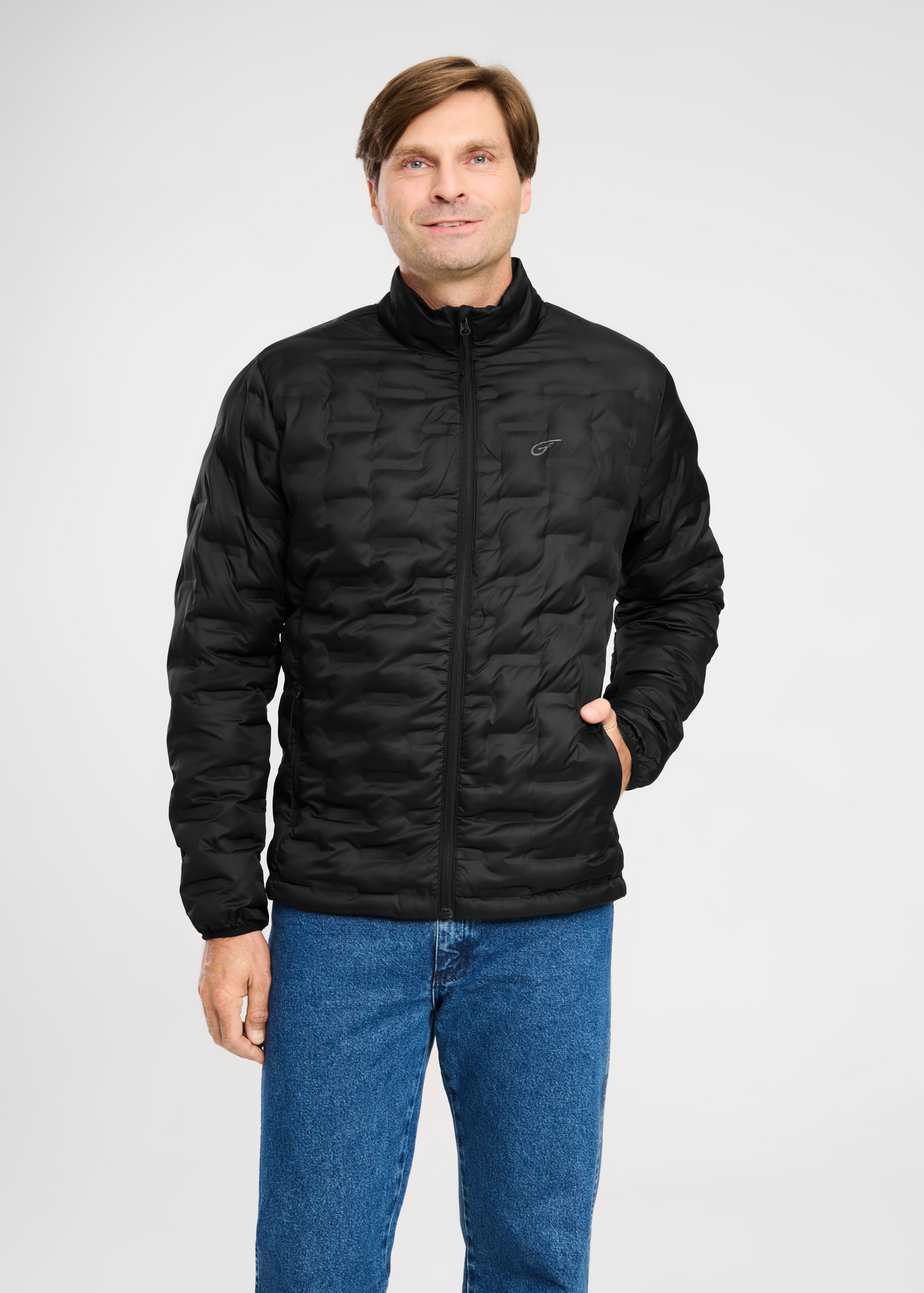 Miesten vanutäytteinen toppatakki, jossa on edessä täyspitkä vetoketjukiinnitys. Sivuilla on vetoketjutaskut.