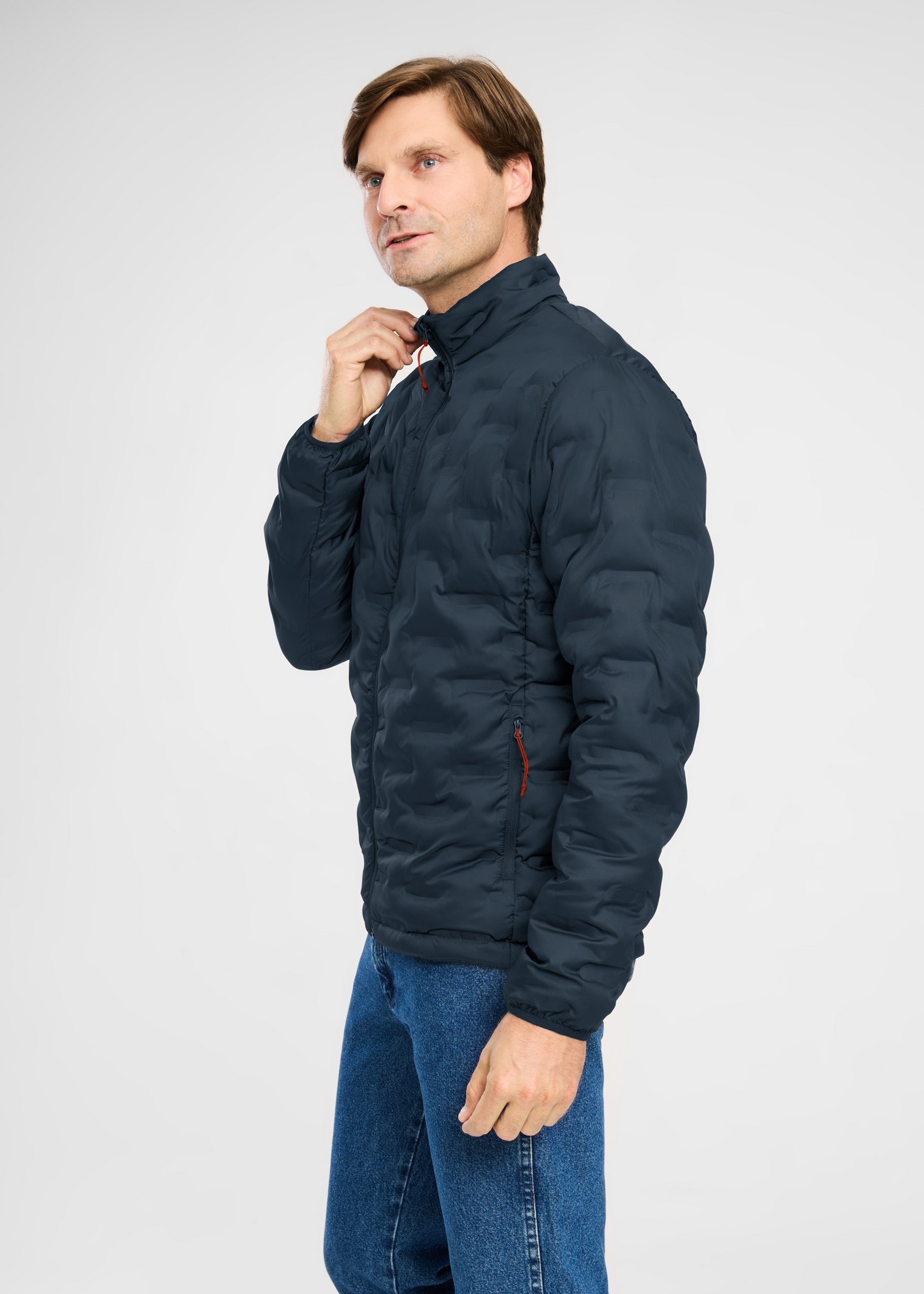 Miesten vanutäytteinen toppatakki, jossa on edessä täyspitkä vetoketjukiinnitys. Sivuilla on vetoketjutaskut.