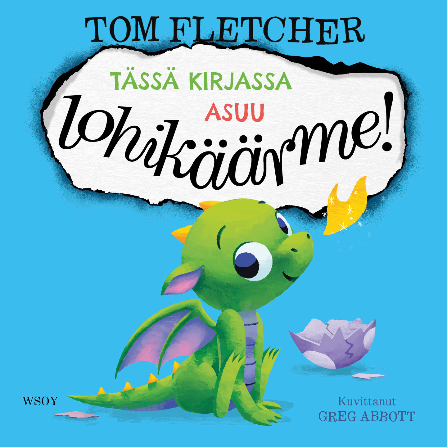 Pikkuruinen lohikäärme on kuoriutunut tähän kirjaan. Lohikäärme aivastaa - ja kirja syttyy tuleen! Toiminnallisessa kuvakirjassa puhalletaan ja heilutetaan kirjaa, jotta lieskat saataisiin sammumaan. Hei katso, tämän kirjan sivulla on muna! Se alkaa juuri nyt kuoriutua... Munasta tulikin söpö pieni LOHIKÄÄRME. Voit vaikka kutittaa sen nenää. No, nyt lohikäärme aivasti - ja kirja syttyi palamaan! Voitko auttaa lohikäärmettä sammuttamaan lieskat? Tässä kirjassa asuu lohikäärme! on toinen osa hulvatonta sarjaa, joka on täynnä huumoria, yllätyksiä ja toimintaa. Lastenkirjan lukeminen ei vielä koskaan ole ollut näin vauhdikasta! Tom Fletcher on Iso-Britannian suosituimpia lastenkirjailijoita. Hän on myös kuuluisia muusikko, Guinnessin ennätyksen haltija ja vloggaaja, jolla on yli 600 000 seuraajaa.