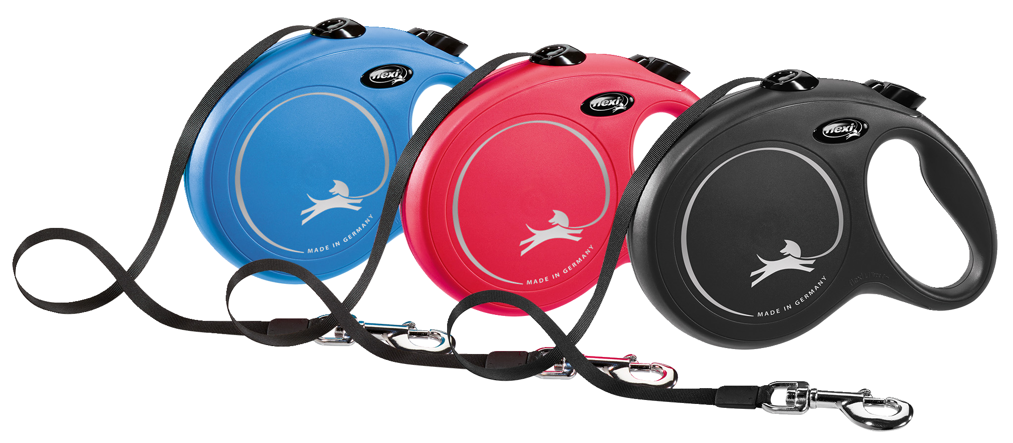Flexi New Classic -kelatalutin sopii M/L-kokoisena rauhallisille, alle 50 kg painaville koirille, pituus 8 m. Jos koiralla on voimakas temperamentti, suositeltava enimmäispaino on 25 kg. Automaattisesti sisään ja ulos rullautuva hihna antaa paljon liikkumavapautta, jarrumekanismi toimii napin painalluksella. Flexi-taluttimet valmistetaan Saksassa. Jokainen talutin kootaan käsin ja ne läpikäyvät yli 90 laadunvalvonnan takastuspistettä ennen myyntiin tuloa. Siksi Flexi-taluttimen laatuun voi luottaa!