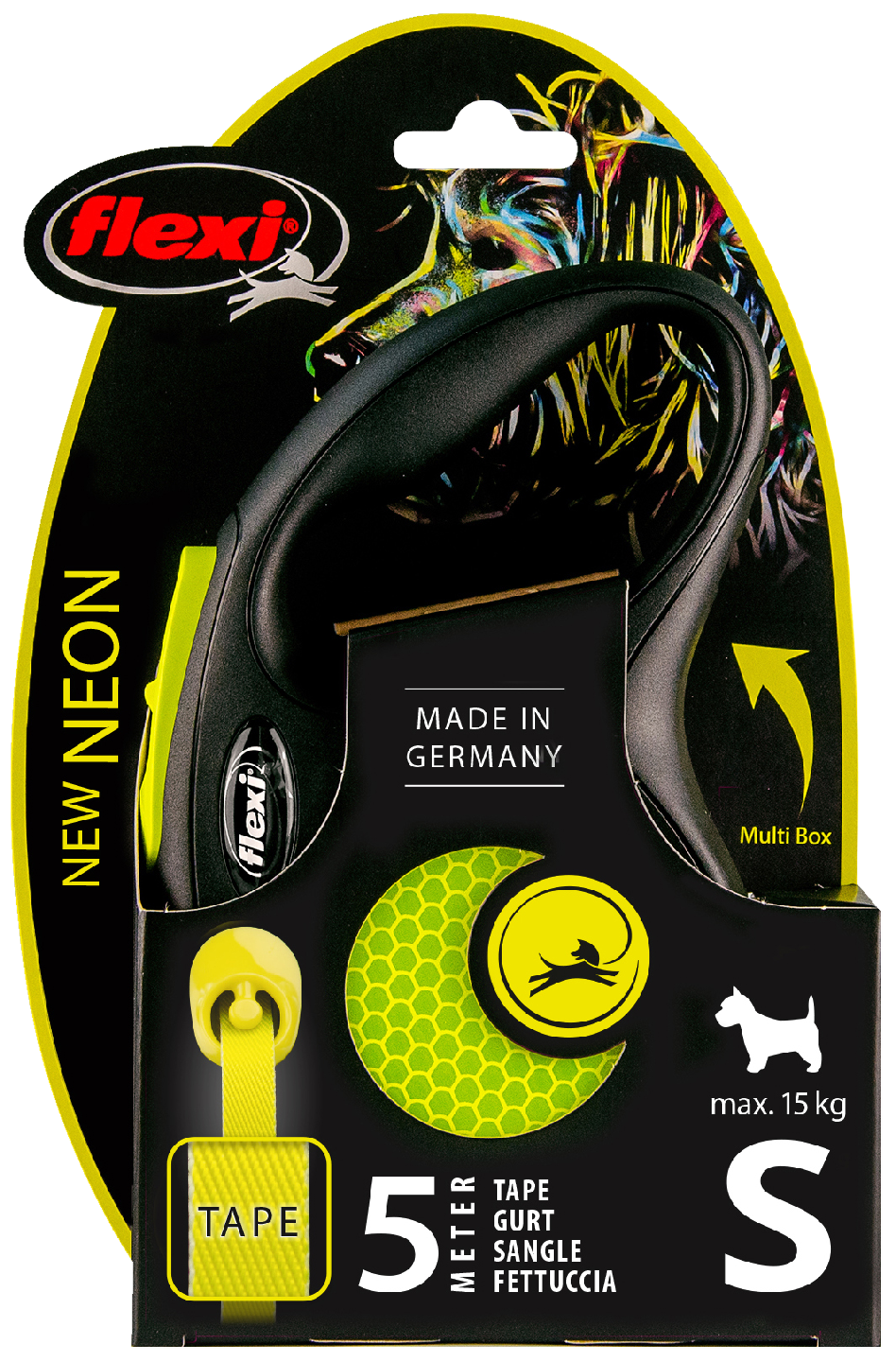 Flexi New Neon -taluttimessa on uusi jarrumekanismi, joka toimii nopeasti ja varmasti - juuri silloin kuin sen pitääkin. Innovatiivinen nauhanohjuri huolehtii, ettei hihna jumitu ja aiheuta kiusallisia tilanteita. Neonkeltainen nauha ja heijastimet taluttimen sivuilla erottuu hyvin pimeässä kaukaakin. Painoraja max 15 kg. Lisävarusteiden avulla tuunaat Flexi-taluttimesta omiin tarpeisiisi sopivan ja monikäyttöisen luottotarvikkeen, jossa kakkapussit ja namit kulkevat kätevästi mukana. Kiinnitettävän valon ansiosta et tarvitse erillistä taskulamppua iltalenkkejä varten. Flexi-taluttimet valmistetaan Saksassa. Jokainen talutin kootaan käsin ja ne läpikäyvät yli 90 laadunvalvonnan tarkastuspistettä ennen myyntiin tuloa. Siksi Flexi-taluttimen laatuun voi luottaa!