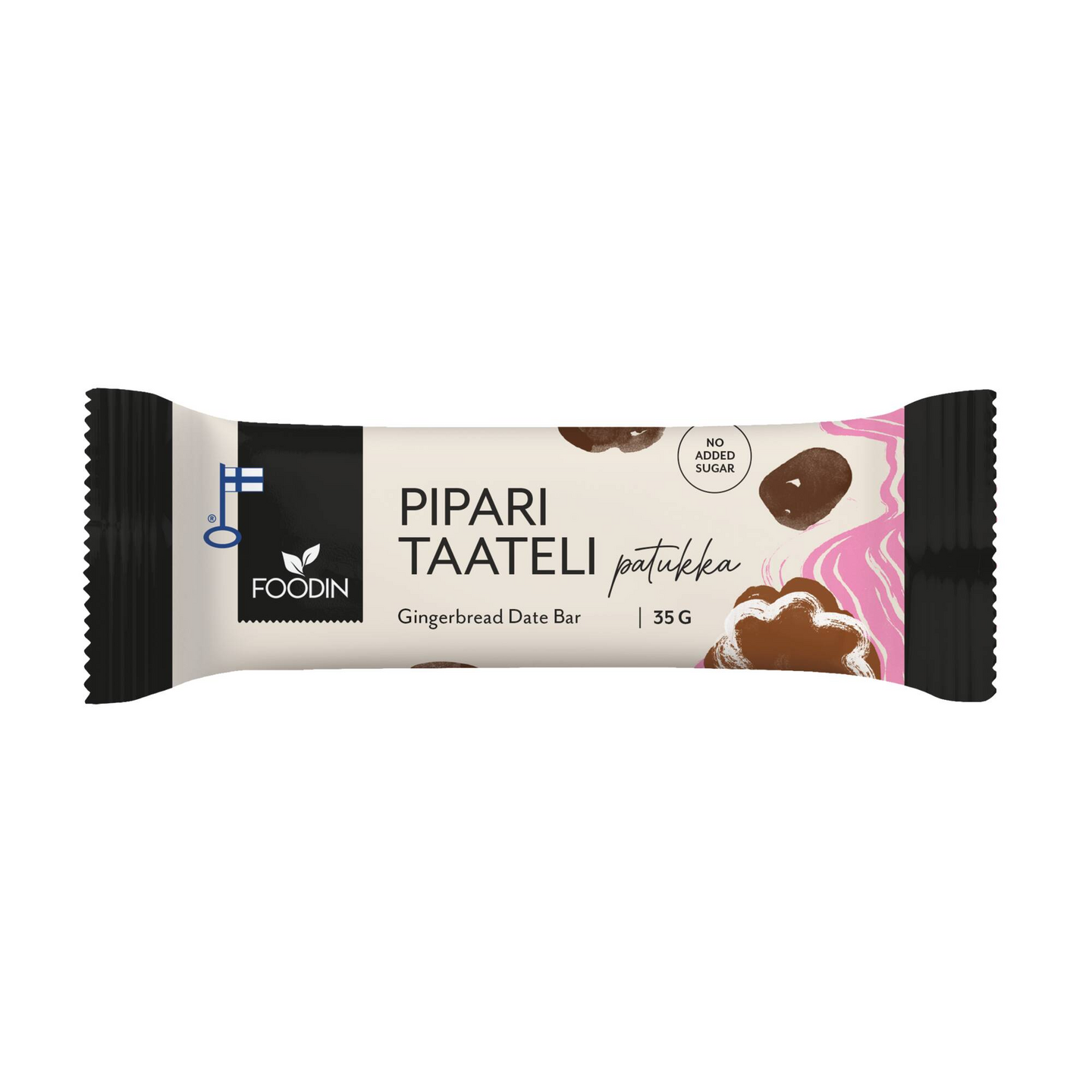 Joulun suosikkimaut hyppäsivät samaan patukkaan. Piparitaatelipatukassa yhdistyy mehukas ja makea aurinkokuivattu taateli sekä klassiset piparkakkumausteet; ceyloninkaneli, kardemumma, neilikka, muskottipähkinä, inkivääri ja ripaus maustepippuria. Täydellinen yhdistelmä makua ja pehmeää koostumusta – kun piparkakkutaikinaa nauttisi!