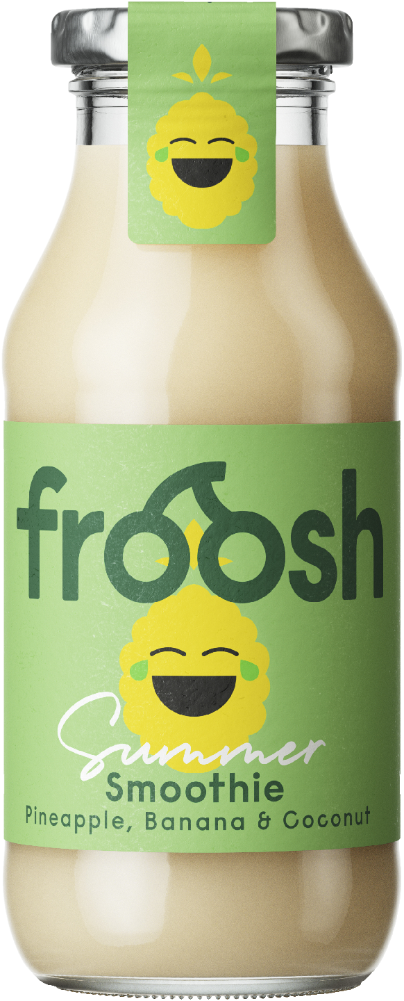 Froosh hedelmäsmoothie. Froosh Tropical Twist on trooppisen herkullinen yhdistelmä makeaa banaania, ananasta ja kookosvettä. Täydellinen välipala tilanteeseen kuin tilanteeseen. Smoothie on valmistettu luonnollisista aineksista, eikä se sisällä lisäaineita. 100% hedelmää.