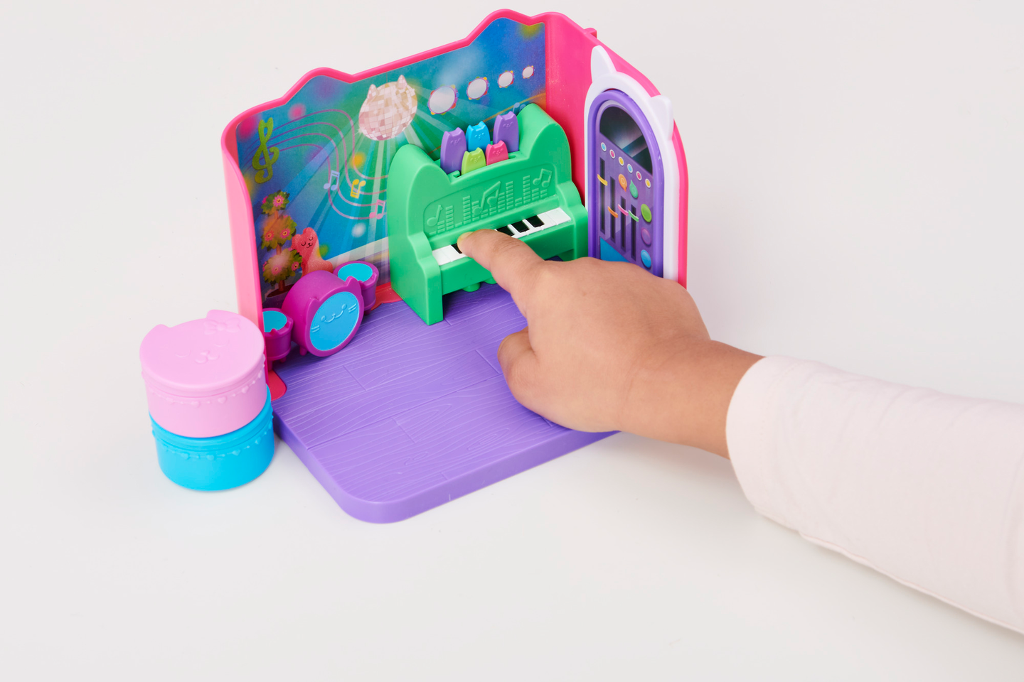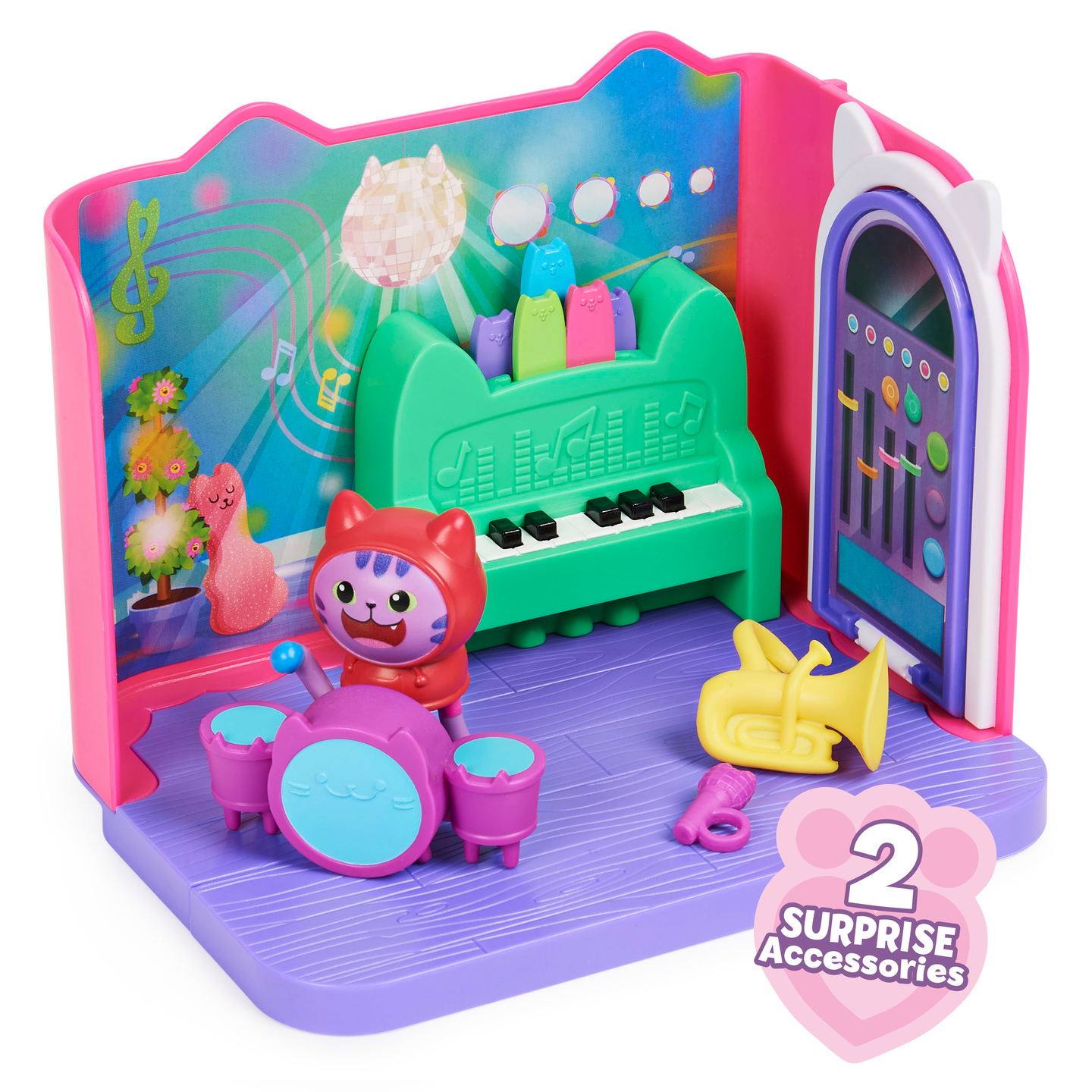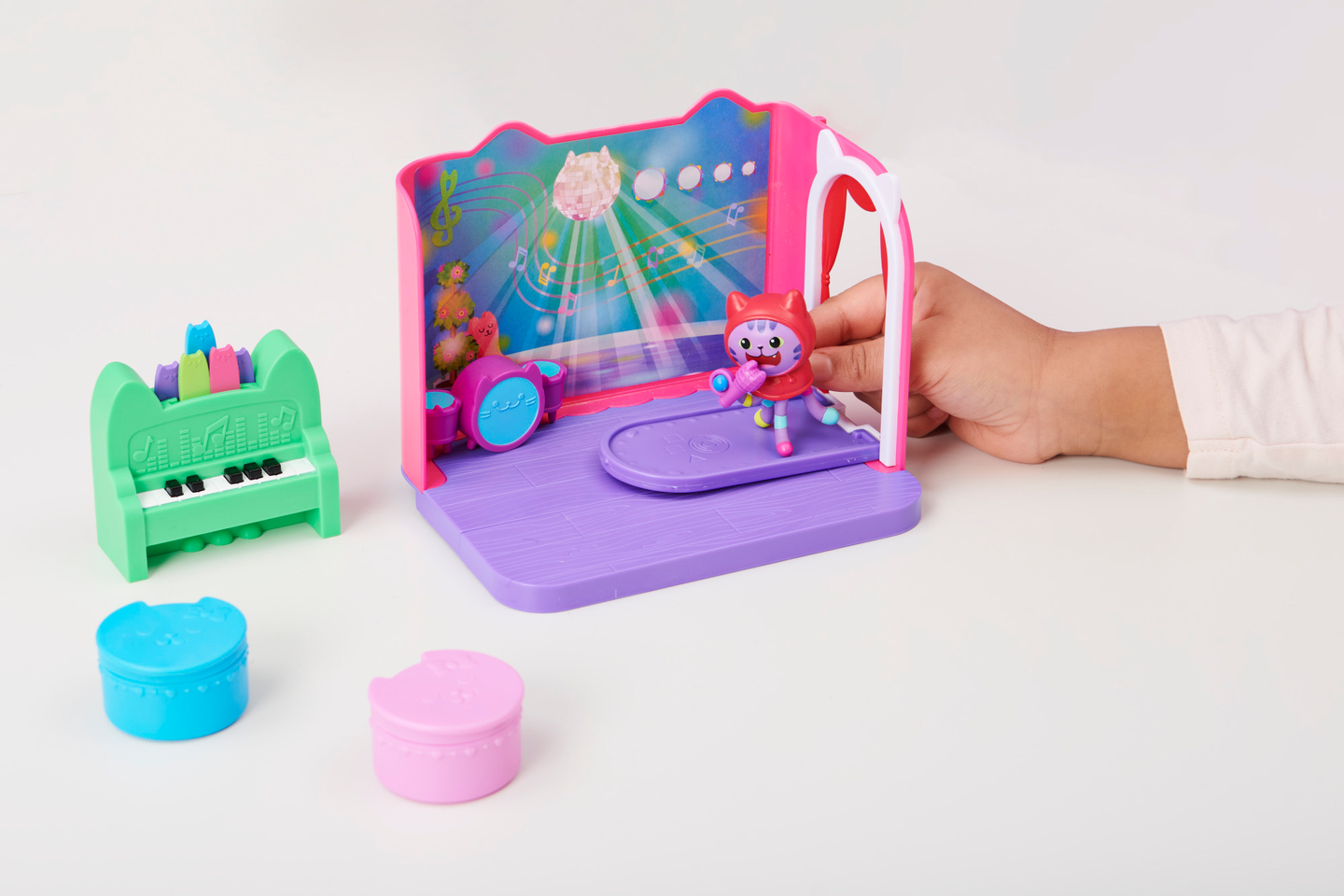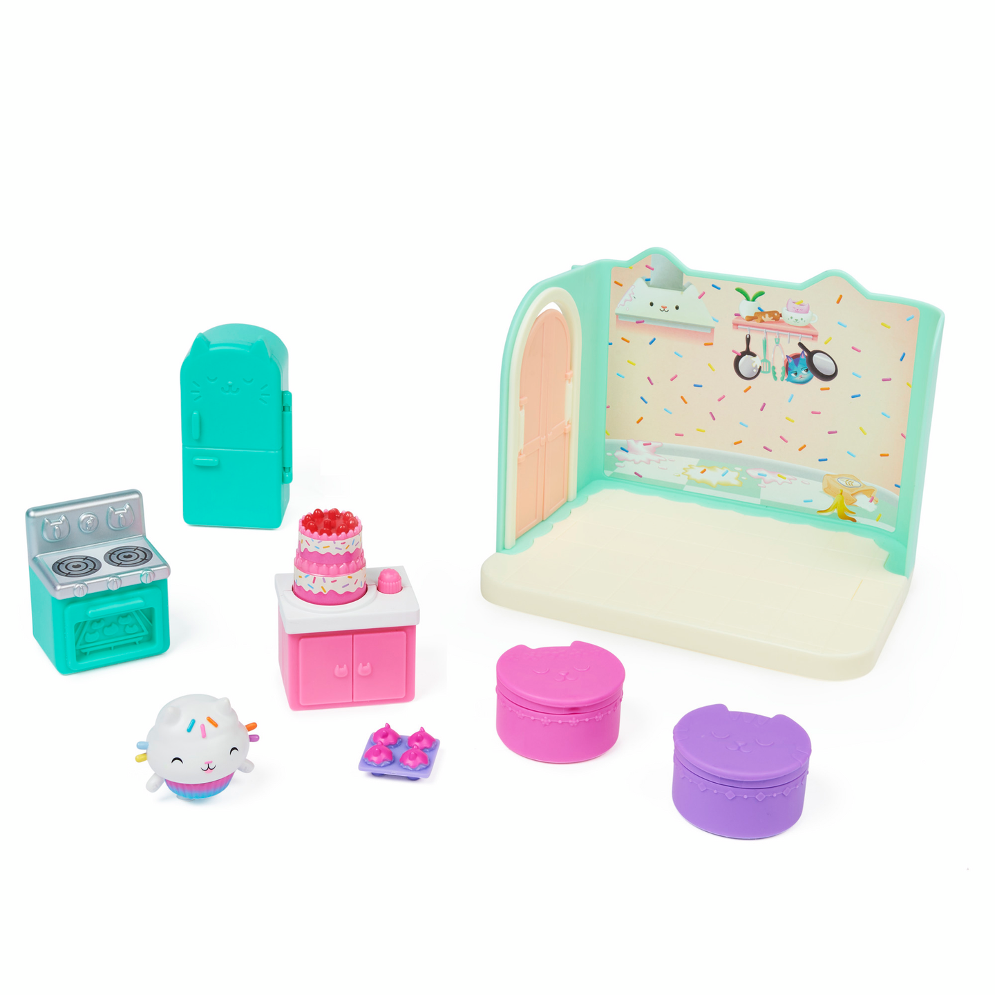 Vietä rentouttava kylpyläpäivä Merikatin kanssa Gabbyn Nukketalon Hemmottelu- kylpyhuoneessa. Tämä ylellinen Gabbyn Nukketalo- leikkisetti on täynnä hauskoja yksityiskohtia ja yllätyksiä tutkittavana, se herättää ohjelman taianomaisen kylpyhuoneen henkiin. Avaa laatikko ja löydät Merikatti- keräilyfiguurin, kolme huonekalua, kumiankka- kissatarvikkeen sekä kaksi Nukketalopakettia, joiden sisällä on yllätystarvikkeet. Aivan kuten Gabby tekee jokaisen jakson aluksi, avaa omat erityiset Nukketalopakettisi ja löydät setin mysteeritarvikkeet: hajuvesipullon ja pyyhekääreen kurkkunaamion kanssa, joita Merikatti voi todella käyttää. Liu’uta kääre Merikatin päähän ja laita hänet ammeeseen kumikisun kanssa rauhoittavaa vaahtokylpyä varten. Kun painat kylpyä alaspäin, kuplat liikkuvat. Se on niin hauskaa. Irrota pyyhe ja laita se kisukylpyhuonekärryyn säilytystä varten ja siirry sitten peilipöydän ääreen hemmoteltavaksi. Käännä peilipöydän peili ympäri paljastaaksesi söpön vedenalaisen maiseman. Monilla ominaisuuksilla varustettu Merikatin hemmottelu kylpyhuone on täydellinen jännittävään kuvitteluleikkiin ja se on loistava lahja lapsille. Käytä sitä Leivo Hileen kanssa- keittiön ja Lepokatin Kauniiden unien- makuuhuoneen kanssa (molemmat myydään erikseen) rakentaaksesi oman Gabbyn Nukketalo maailmasi. Lisäksi voit jopa liu’uttaa kylpyhuoneen Gabbyn Purrfect Nukketaloon (myydään erikseen) löytääksesi lisää tapoja leikkiä nukketaloseikkailuitasi. Viimeisen yllätyksen saat skannaamalla yhden Nukketalopaketin sisällä olevan QR- koodin, saat erikoispalkinnon ilmaisessa Gabbyn Nukketalo- sovelluksessa (saatavilla iOS- ja Android- käyttöjärjestelmissä). Hemmottele Merikattia Gabbyn Nukketalon Hemmottelu- kylpyhuoneessa.
