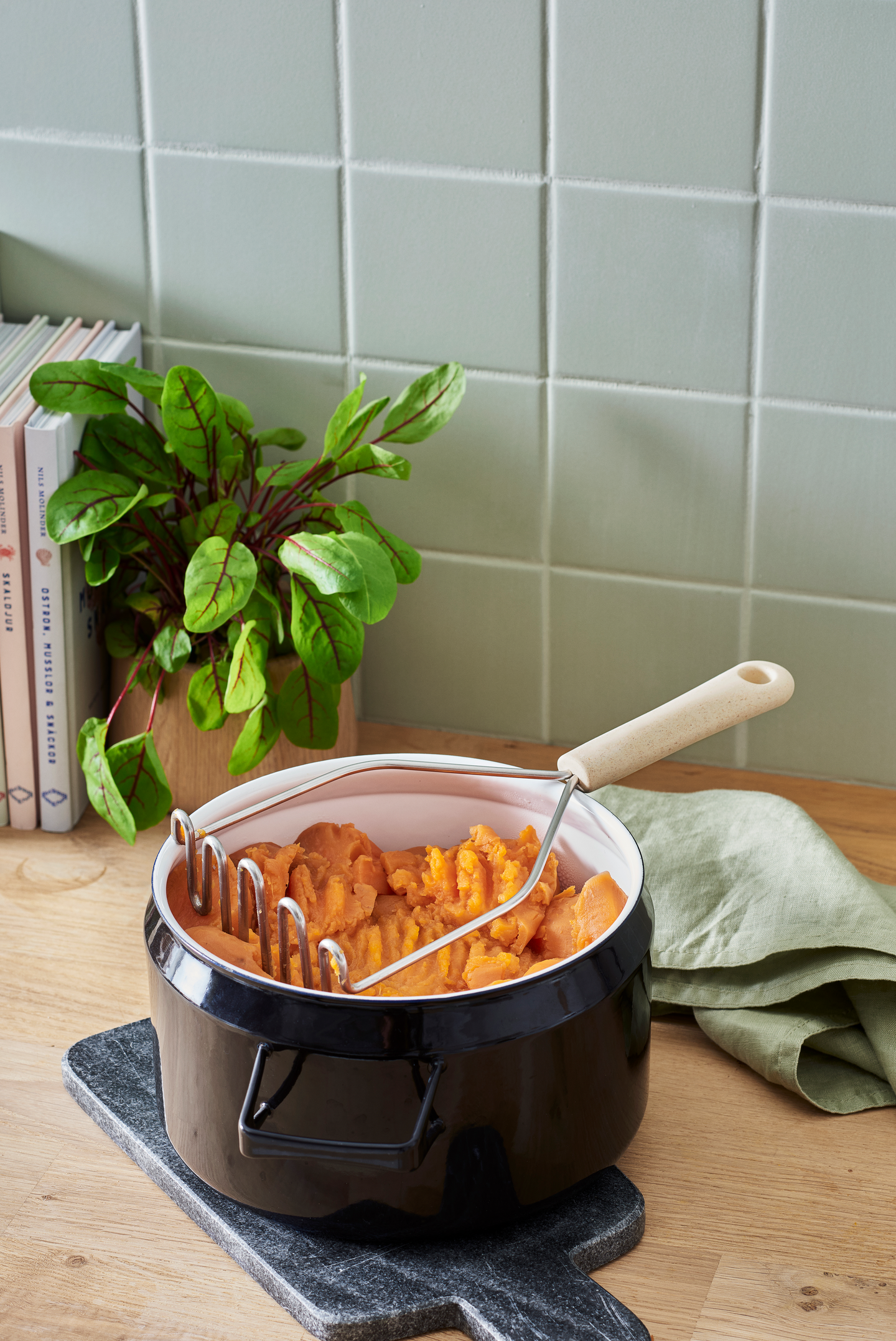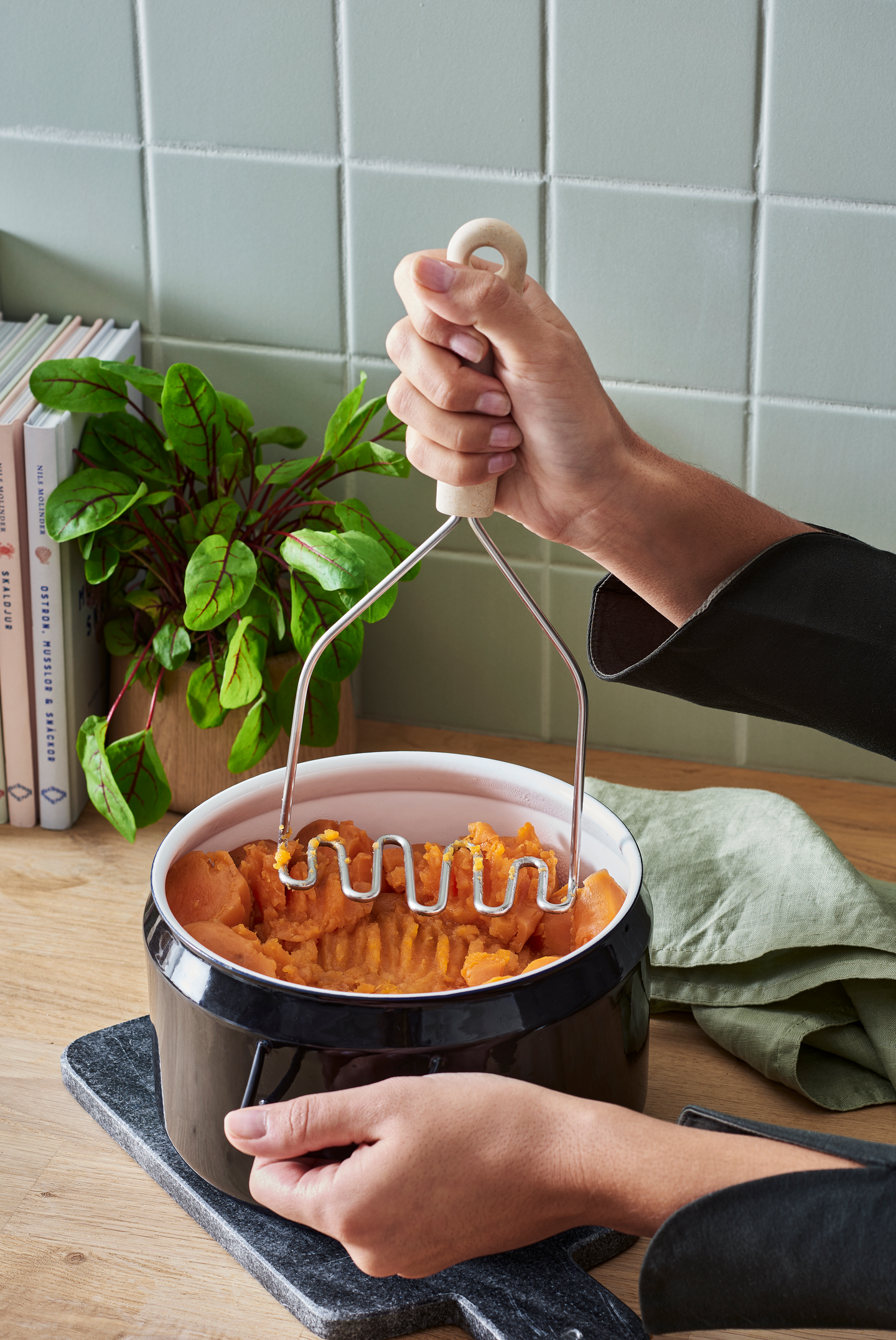 Perinteinen survin keitettyjen perunoiden ja juuresten soseuttamiseen. Kahvan materiaali on 80 % biopohjainen, sisältää sokerituokoa ja puukuitua. Kädensijan hiilijalanjälki on pienempi verrattuna perinteisestä muovista valmistettuun vastaavaan. Teräosa on valmistettu ruostumattomasta teräksestä.