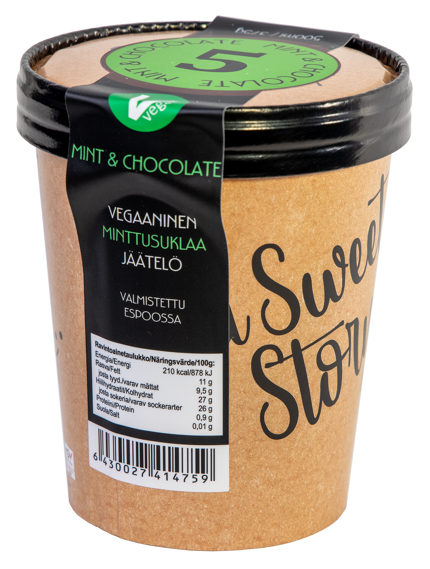 Raikas ja silkkisen pehmeä mintun makuinen vegaanijäätelö, jossa joukossa tumman suklaan lastuja sekä suklaakuorrute. Pienissä erissä taidolla ja vain parhaista raaka-aineista valmistettu artesaanijäätelö on lähellä tuotettu käsityötuote. Artesaanijäätelömme sisältävät enemmän makua, mutta reilusti vähemmän rasvaa ja ilmaa ns. teolliseen jäätelöön verrattuna. Ei keinotekoisia maku- tai väriaineita. Suosittelemme tuotteen ottamista huoneenlämpöön tai jääkaappiin 10-15 minuuttia ennen tarjoilua. Suosimalla lähellä tuotettua, tuet kotimaista tuotantoa ja työpaikkoja sekä paikallista yrittäjyyttä.