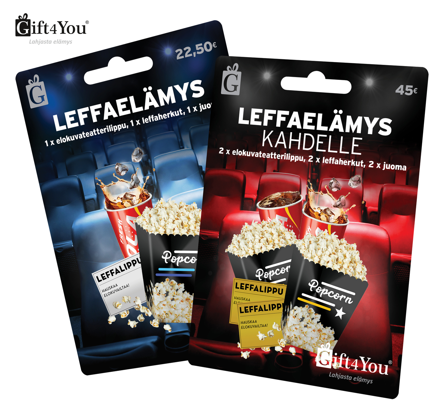 Luvassa unohtumaton leffailta! Lahjakortilla saat elokuvateatteriliput, leffaherkut sekä virvokkeet. Täydellinen leffaelämys kätevästi samassa paketissa! Mukana valtakunnallisesti kattava verkosto persoonallisia ketjuteattereiden ulkopuolisia paikallisteattereita. Lahjan saaja voi vapaasti valita milloin ja missä verkostoon kuuluvassa elokuvateatterissa haluaa kortin käyttää. Leffaherkut vaihtelevat teattereittain. Tutustu tarkemmin Gift4You.fi verkkosivuilla. Lahjakortti on voimassa 12 kuukautta ostopäivästä. Lahjakorttien valikoima saattaa vaihdella kaupoittain.