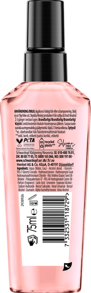 Oletko kyllästynyt katkenneisiin latvoihin ja jatkuvasti leikkaamaan kaksihaaraisia hiuksiasi? Gliss Split Hair Miracle -tuotesarja on kaksihaaraisille ja vaurioituneille hiuksille suunniteltu sarja korkeimmalla hoitoasteella. Split Hair Miracle seerumi on hiuksiin jätettävä hoitoaine, joka lisää hiusten luonnollista kiiltoa ja pehmeyttä sekä yhdistää kaksihaaraisten hiusten haaroittuvat osat pitkäkestoisesti. Seerumin lämpösuoja suojaa hiuksia föönauksen aiheuttamilta lämpövaurioilta. IONIYHDISTETTÄ ja VIINIRYPÄLEEN SIEMENÖLJYÄ sisältävä linja poistaa rakenteellisia eroavaisuuksia juurista latvoihin, jonka avulla saavutat vahvat ja terveennäköiset hiukset! Split Hair Miracle Seerumissa oleva HaptIQ-teknologia vahvistaa ja korjaa hiuksia näkyvästi. Schwarzkopf GLISS takaa 100 % vahvemmat hiukset.* Tuote on silikoniton sekä PETA-sertifioitu. Schwarzkopf GLISS pakkaukset jopa 100 % kierrätettyä muovia. * vs. käsittelemättömät hiukset