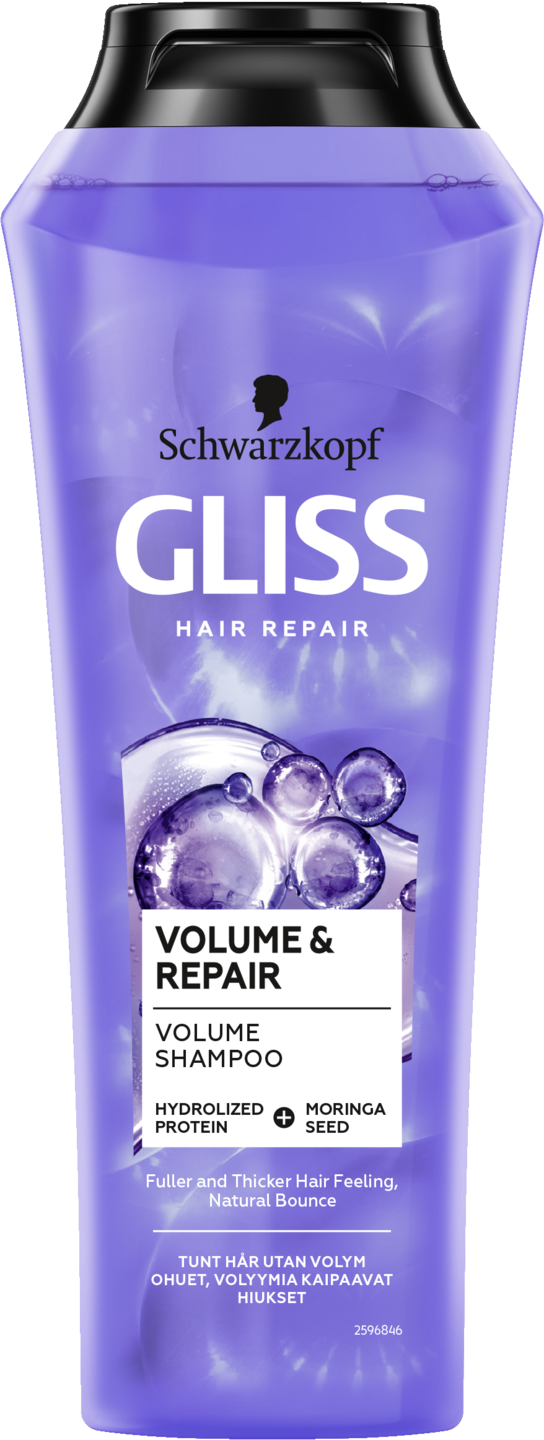 Gliss Volume & Repair shampoo lisää hiuksiisi luonnollista volyymia, koska se sisältää hydrolisoitua proteiinia ja moringa-siemen uutetta, jotka vahvistavat hiuksiasi ja palauttavat hiustesi luonnollisen volyymin. 92 % luonnollista alkuperää olevia aineosia*. *Sisältäen veden.