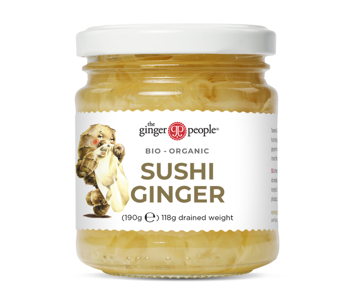 Pikkelöity luomu inkiväärilastu, eli sushi-inkivääri on perinteisesti sushin kanssa nautittava lisuke, mutta sopii loistavasti myös salaatteihin, leivän päälle ja uunilohen seuraksi. Lisäaineeton ja perinteisellä tavalla riisiviinietikalla ja sokerilla pikkelöity. Säilyy 3kk avattuna jääkaapissa.