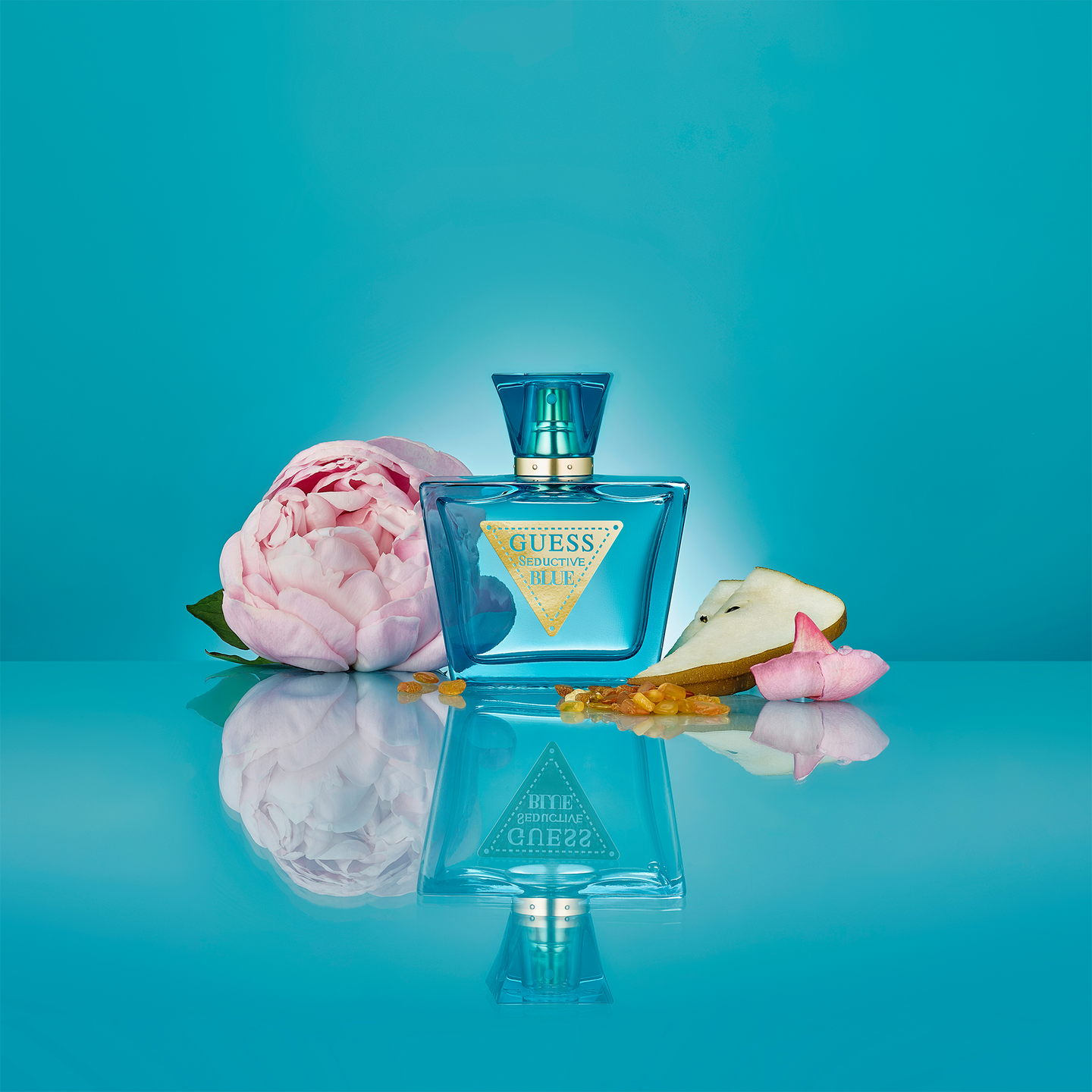 Guess Seductive Blue Eau de Toilette kuljettaa sinut rauhan ja ilon keitaalle tämän houkuttelevan, raikkaan ja koukuttavan tuoksun myötä. Tuoksu avautuu raikkailla päärynän ja italialaisen bergamotin ylävivahteilla. Sydämessä paljastuvat kasteiset pionin terälehdet, ruusuvesi ja sininen freesia, joita seuraa pohjatuoksun luoma lämpö, jossa luumu, silkkinen myski, ambra ja patsuli kietoutuvat yhteen. Tämä tuoksu herättää muistoja auringonpaisteesta meren äärellä ja kutsuu sinut pakenemaan omaan paratiisiisi.