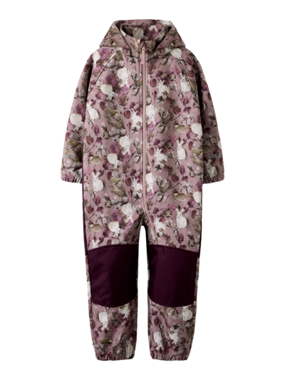 Lasten vedenpitävä softshell-haalari, jossa on suloinen eläinaiheinen kuvionti. Haalarissa on vetoketjukiinnitys ja irrotettava huppu. Joustavat hihansuut. Lämmittävä ja pehmeä fleecevuori. Teipatut saumat polvissa ja istuinosassa. Vahvikkeet polvissa ja istuma-alueella. Kestävästä kumista valmistetut irrotettavat ja säädettävät jalkalenkit takaavat mukavan istuvuuden jalan ympärillä. Koristeelliset heijastinyksityiskohdat. Tämä kevyt ja vedenkestävä ulkovaate tekee välikausipukeutumisesta mahdollisimman helppoa. Teknisten ominaisuuksien ansiosta se on helppo valinta. Softshell on vedenpitävää, hengittävää ja tuulenpitävää kangasta, joka sopii mainiosti ulkoleikkeihin pilvisinä, tuulisina ja hieman sateisina päivinä. Materiaalissa on vettähylkivä BIONIC-FINISH® ECO käsittely. Tuote on osittain kierrätysmateriaalista valmistettu.